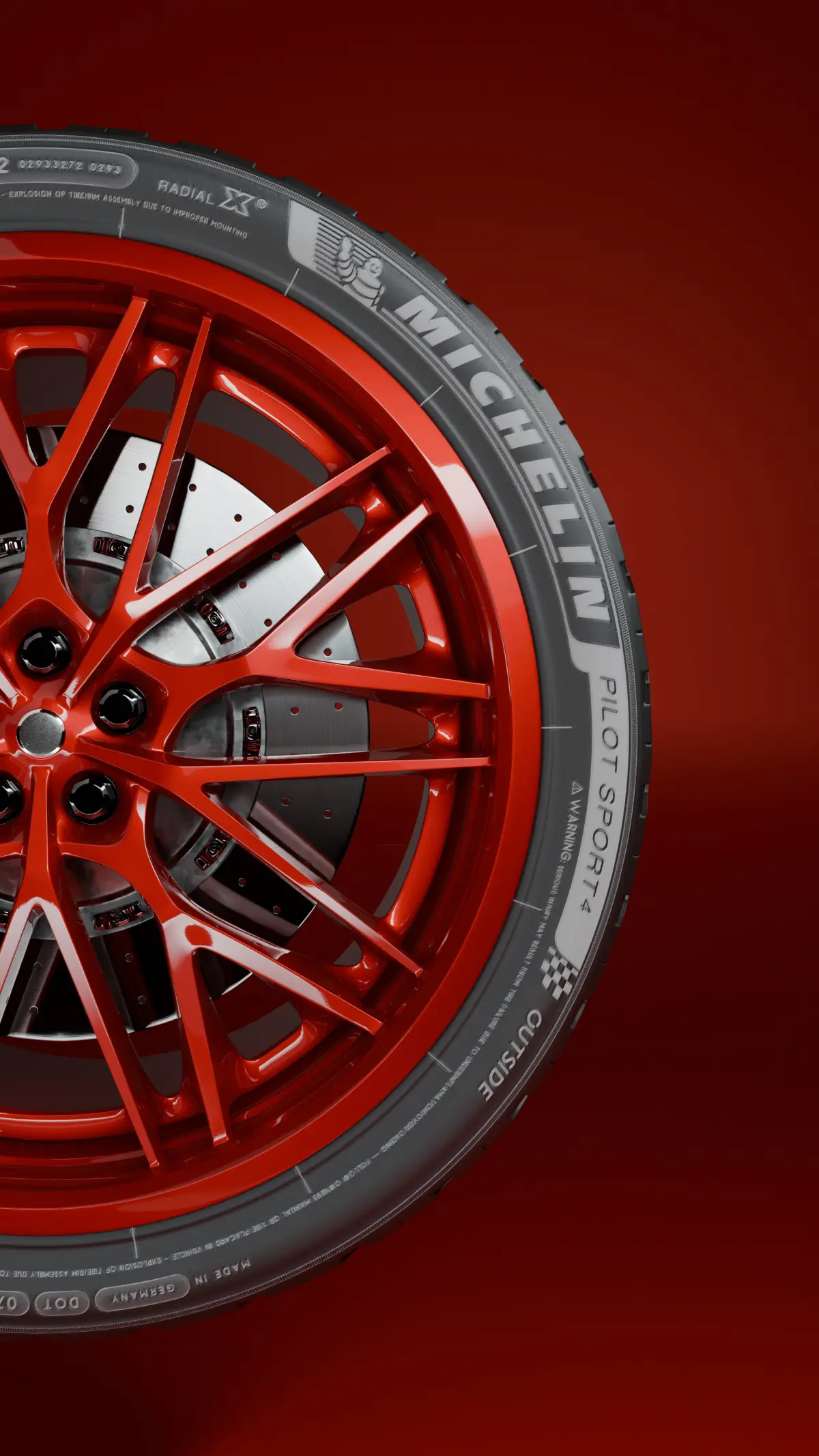 The tire model is integrated with the rim and includes a finely detailed tread pattern modeled for asymmetry, providing visual depth and realism. The sidewall features embossed text and markings consistent with performance tire standards.Both components are created with attention to polygon efficiency, ensuring optimal performance in rendering workflows and real-time applications.