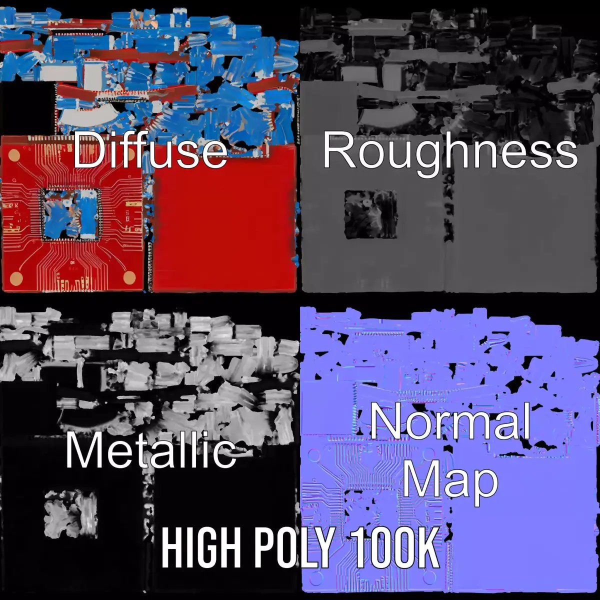 The Red Circuit Chip model pack features a detailed electronic component perfect for tech-related scenes. Each model has 3 levels of detail: low-poly(1000 triangles for mobile), middle-poly(10 000 triangles for environment), and high-poly(100 000 triangles), which allows for the use of this model in production rendering(such as 3ds max, Maya, Cinema4d, Blender, Vray/Corona/Cycles and all other), game engines (Unity and Unreal compatible), and interactive presentations, providing a choice of detail based on the LOD System principle. The model is ideal for use in educational simulations, technology showcases, or virtual circuit board assemblies. The model's textures are PBR, Diffuse, NormalMap, and reflection/roughness/metallic, which are suitable for any modern rendering engine. All models are accurately unwrapped and have no overlapping UV. All textures are 4096*4096 in size. Please like and leave a comment for the model if you liked it.