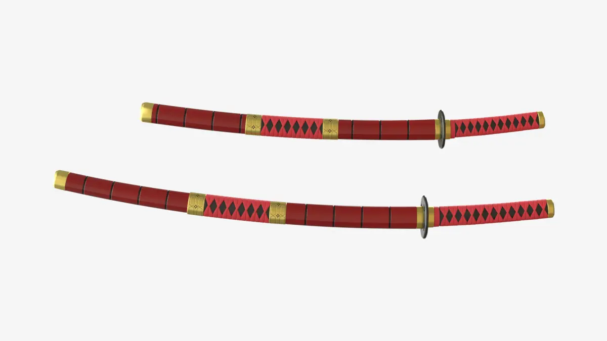 - Red Double Bladed Samurai Katana Wakizashi FBX in format, including textures.