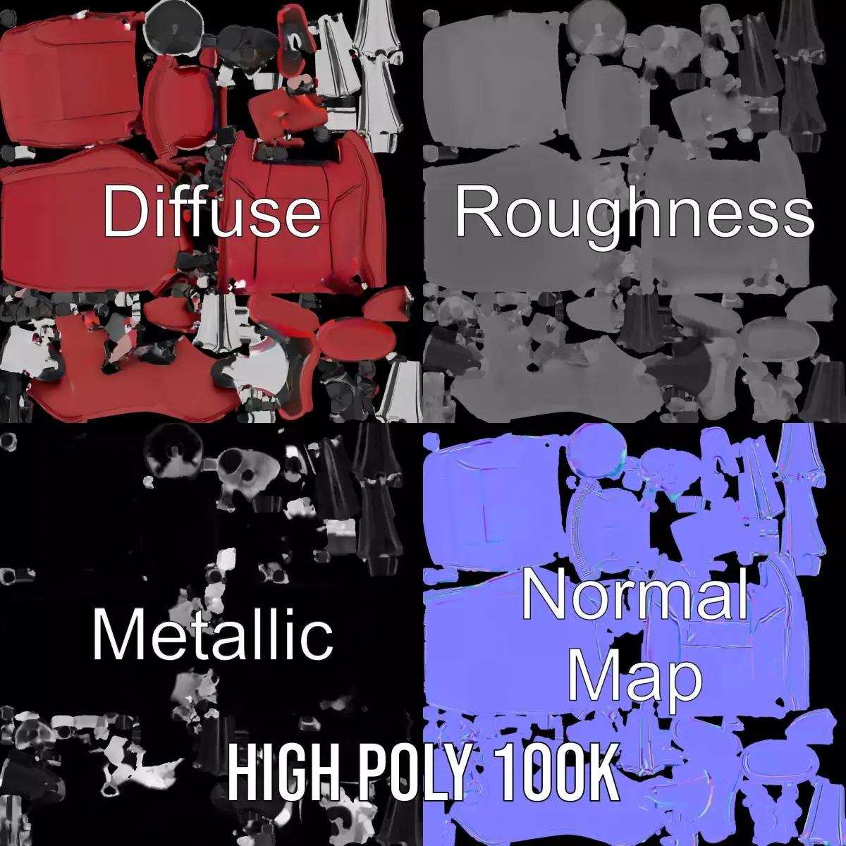 The model's textures are PBR, Diffuse, NormalMap, and reflection/roughness/metallic, which are suitable for any modern rendering engine. All models are accurately unwrapped and have no overlapping UVs. All textures are 4096x4096 in size.