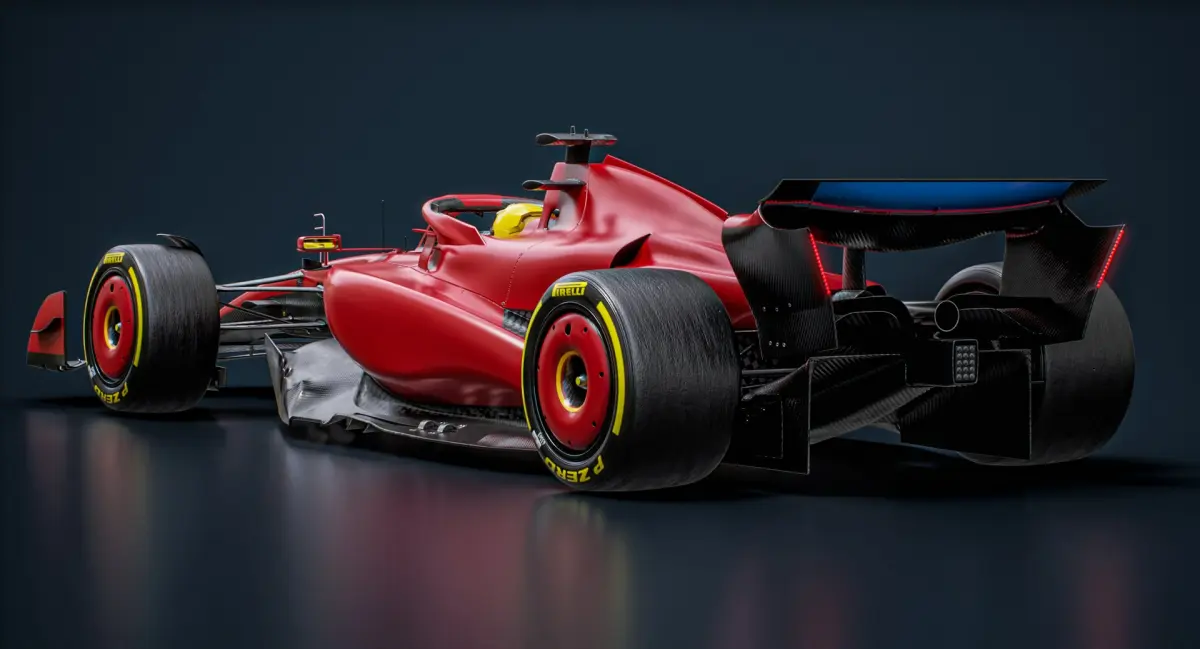 Low-poly subdivision-ready 3D model of Red F1 Team 2025 Formula 1 Race Car with PBR materials (Specular and Metallic workflows). Suitable for livery design, computer/mobile games, broadcast, advertising, visualizations, etc.