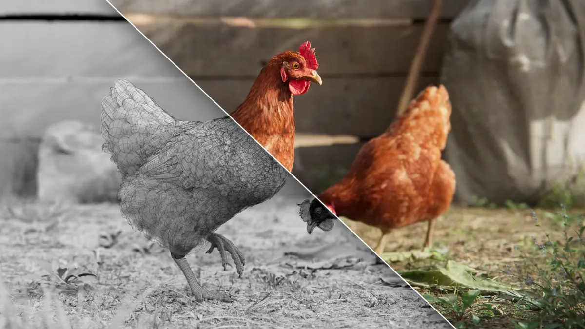 This is a high-quality red hen model with 4K PBR maps, rigging and three animations. The body feathers are made as facets to speed up the rendering and make operations smooth. The rigging follows real bones. The model is made with Blender and Cycles renderer at real-world scale.