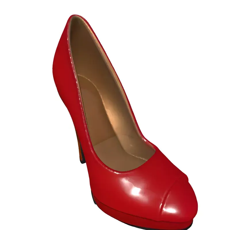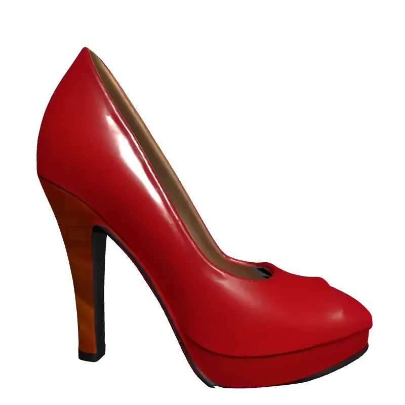 This is a meticulously crafted 3D model of a luxurious red high-heel platform shoe, designed for exceptional visual fidelity and versatility. The model features a rich, glossy dark red finish, enhanced with a subtle, realistic crackle texture that mimics aged or distressed patent leather. Its elegant silhouette is complemented by a sturdy, beautifully textured wooden-look heel and a discreet platform sole, providing a sophisticated aesthetic. This asset is ideal for a wide array of digital applications, including fashion visualization projects, enhancing character models in game development, creating compelling virtual reality (VR) and augmented reality (AR) experiences, and e-commerce product showcases. Furthermore, its high level of detail makes it perfect for high-quality static renderings for advertisements, architectural visualization scenes, or digital art compositions. The model boasts clean topology, ensuring smooth subdivision and optimal performance, whether for close-up renders or real-time integration. It is fully UV unwrapped and includes a comprehensive set of PBR (Physically Based Rendering) textures, such as base color, roughness, normal, and displacement maps, to achieve its lifelike appearance. Compatible with popular 3D software and platforms, it supports common file formats like GLB, OBJ, FBX, USD, and DAE. This model provides an exquisite blend of style and technical excellence for any professional 3D pipeline.