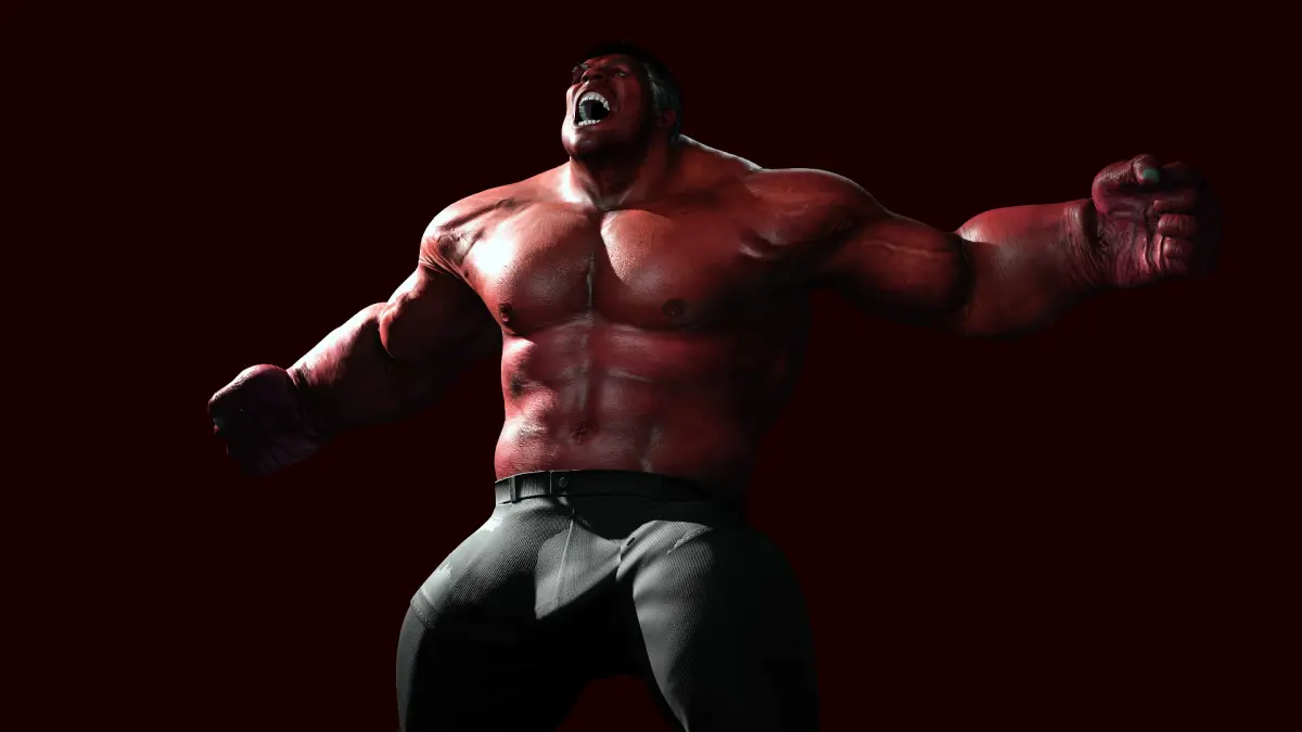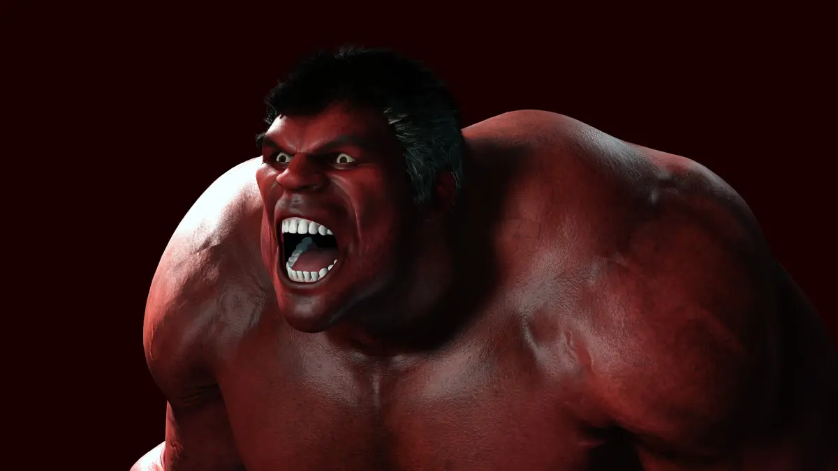 Low-poly 3D model of Red Hulk with Roaring and Jumping animation.
