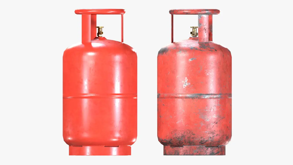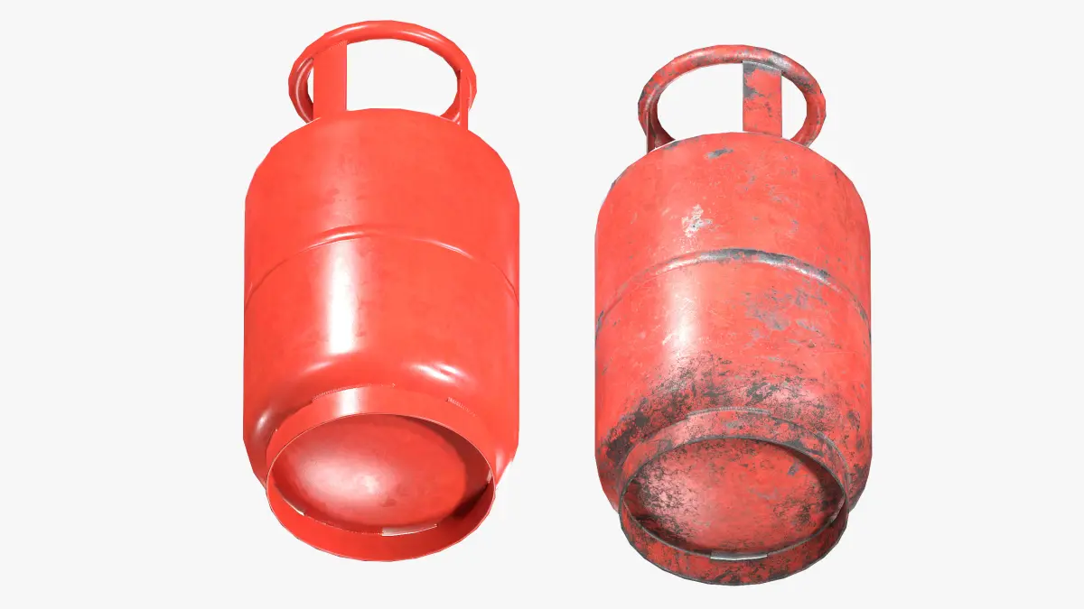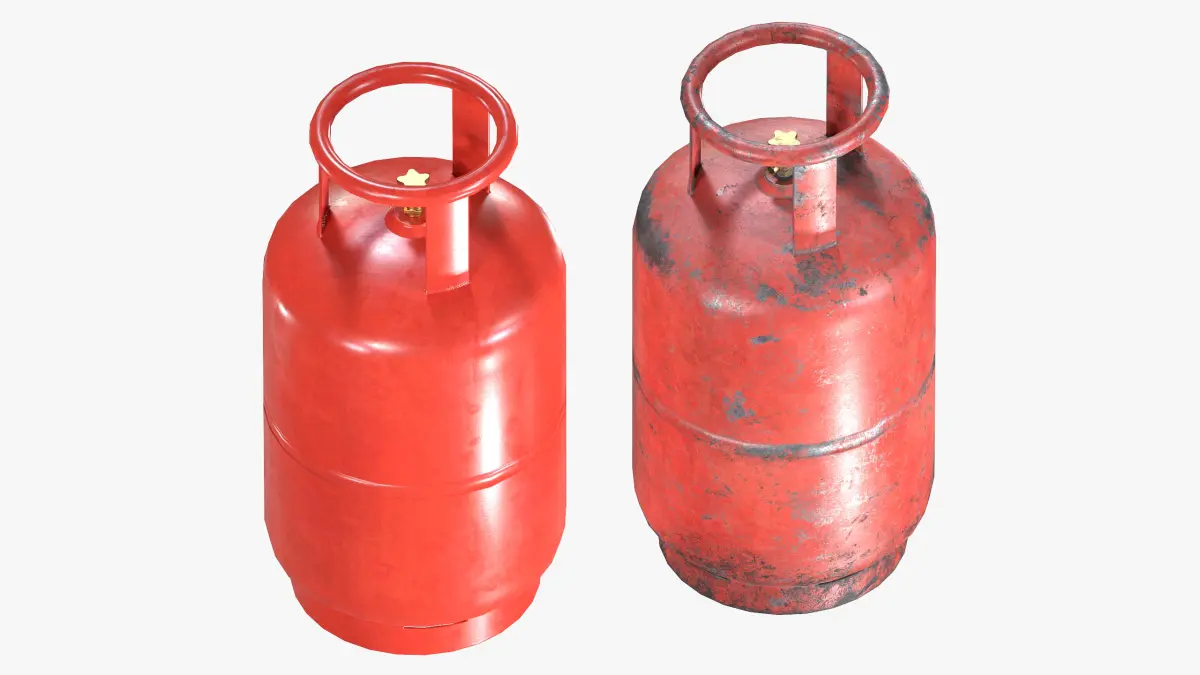 Game ready low-poly 3d model of a Red LPG Gas Cylinder for games, realtime, background use with PBR textures