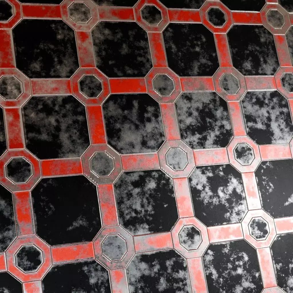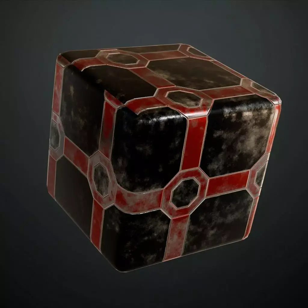This is a PBR Texture Pack of Red Metal Surface. This material features a weathered industrial aesthetic with a dark, worn base overlaid by a distinctive octagonal red framework. The surface is detailed with realistic grime, scuff marks, and oxidation patches, making it ideal for high-traffic sci-fi walkways, heavy machinery panels, or gritty urban environments. All essential maps, including BaseColor, Normal, Roughness, Height, Metallic, and Opacity, are provided to ensure high-fidelity realism and accurate light interaction in your 3D scenes.