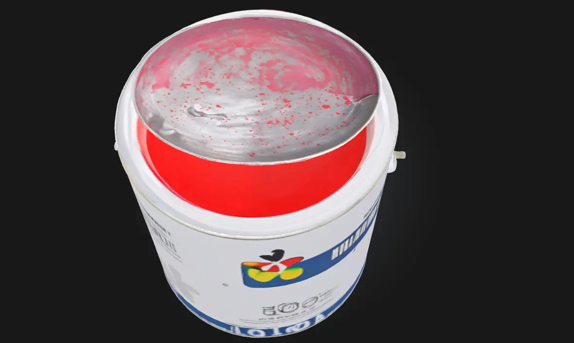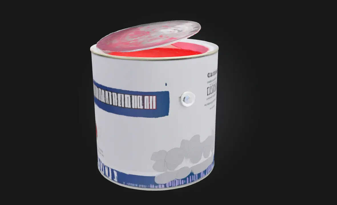 Red Paint Can is a detailed 3D model featuring a standard cylindrical paint container with a worn label and traces of dried paint Perfect for garages, art studios, or construction environments