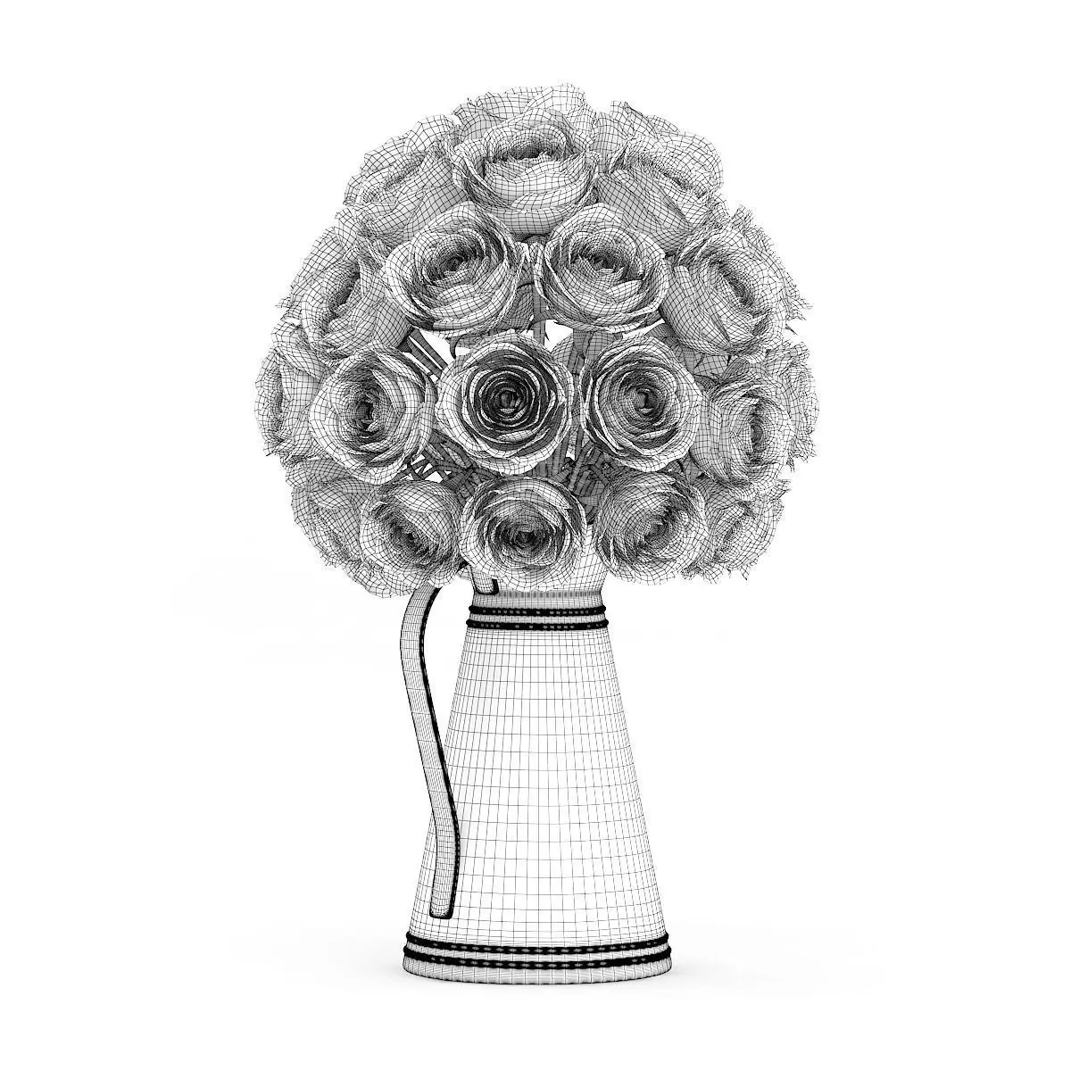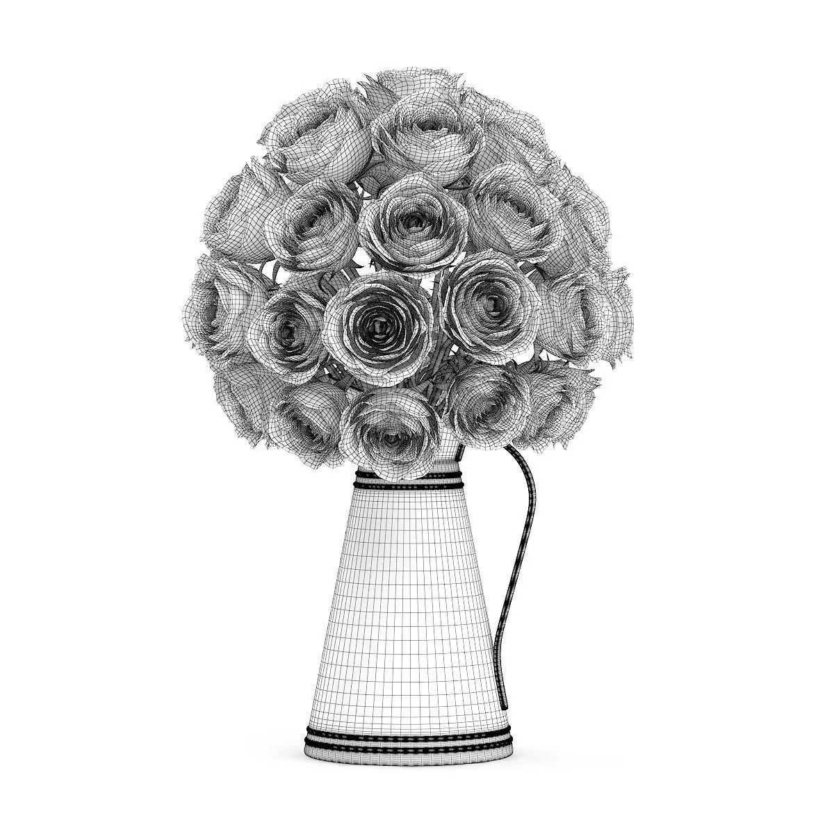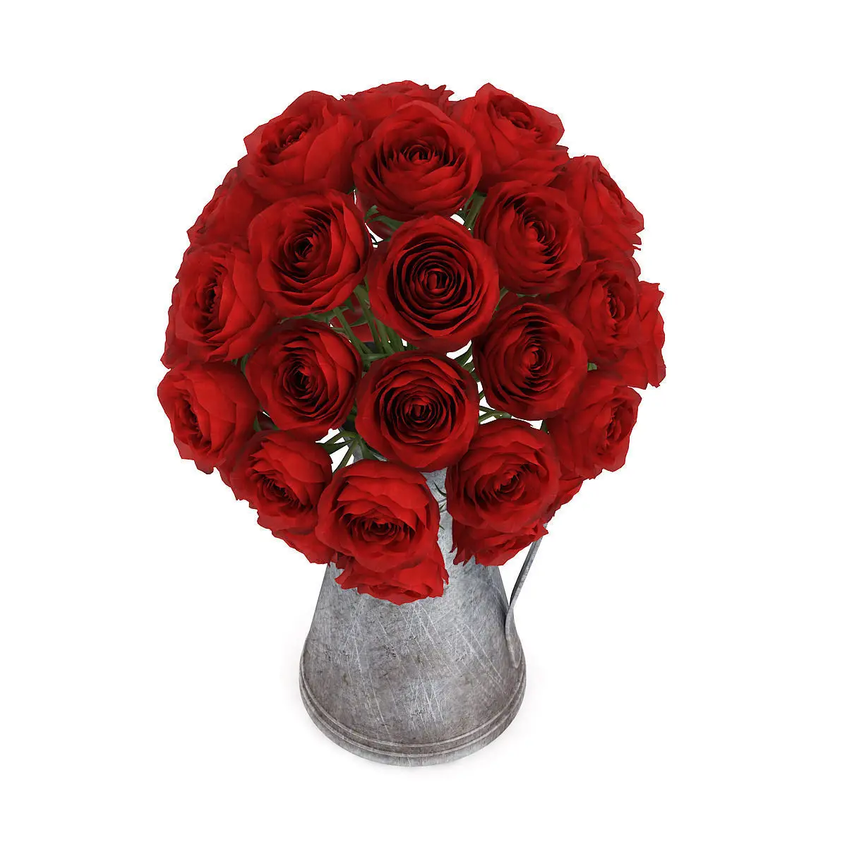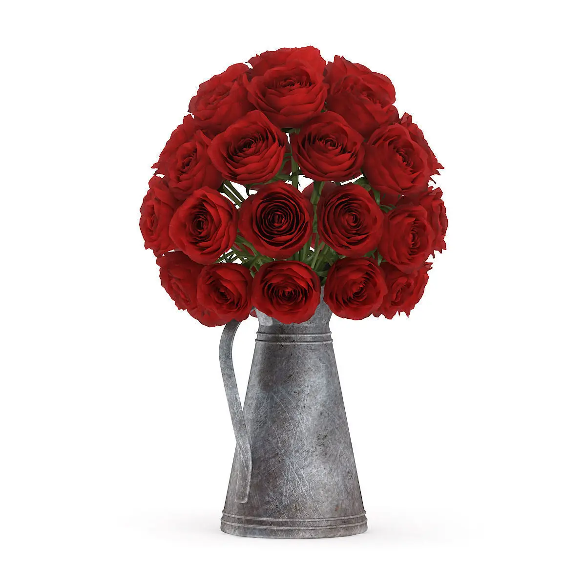 Red Roses in Metal Kettle 3D model