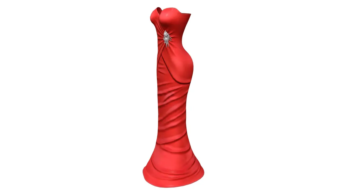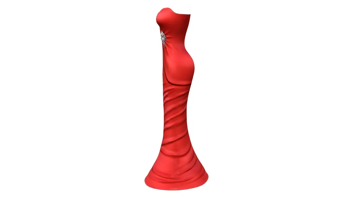 Red Satin Strapless Mermaid Gown With Brooch