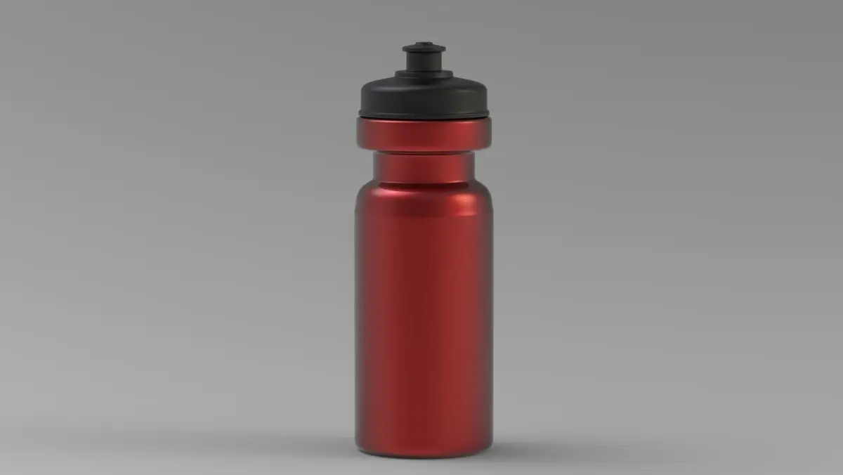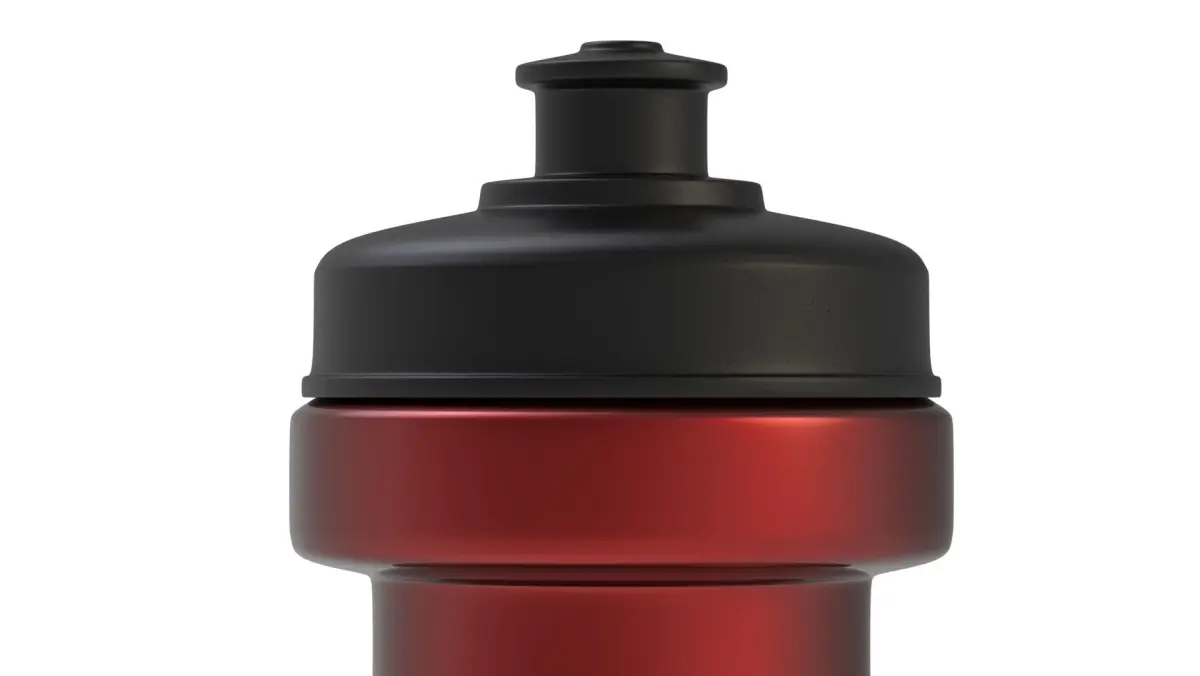 Red sports water bottle with black plastic cap free 3d model can be used for mockup or logo placement.