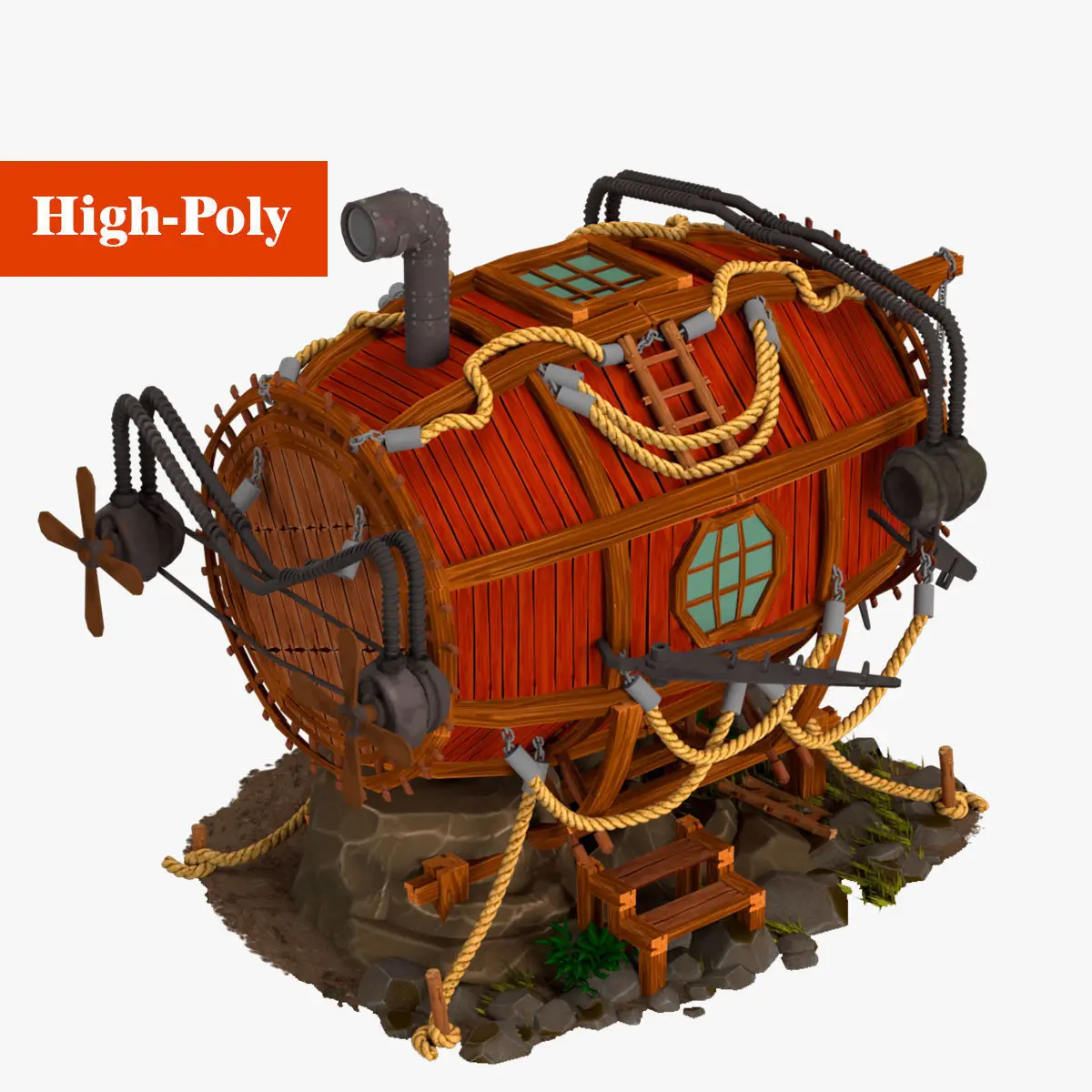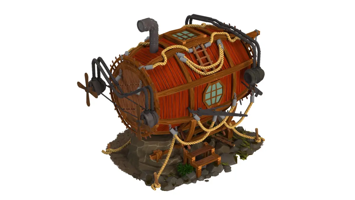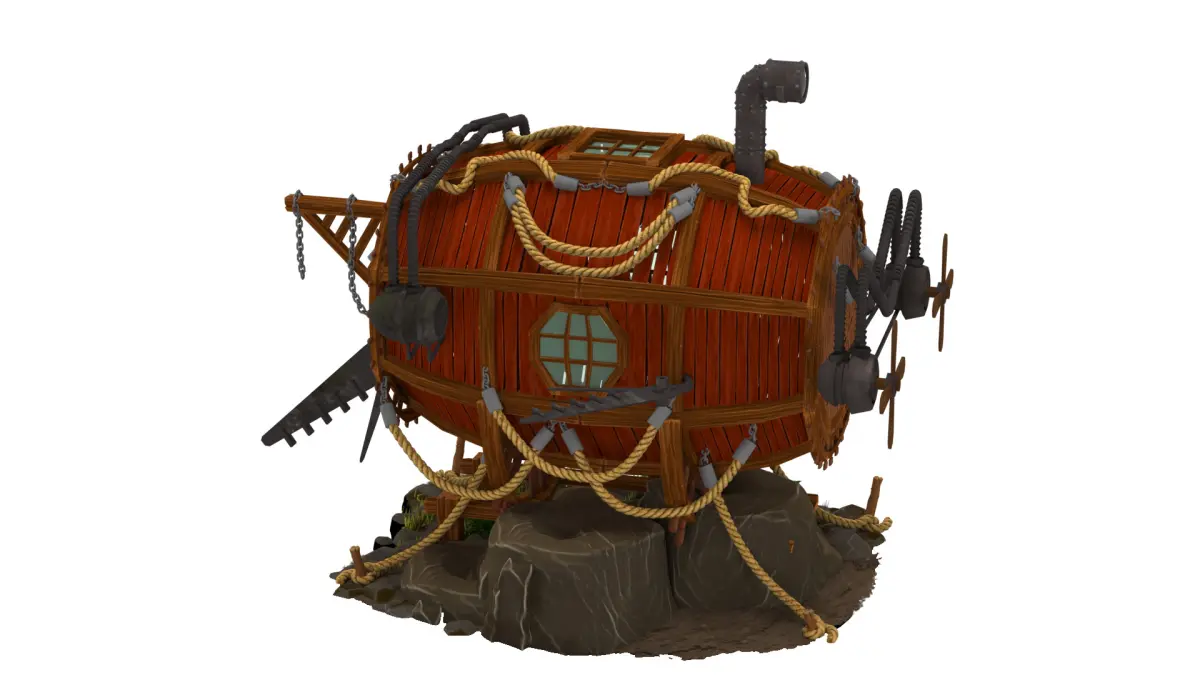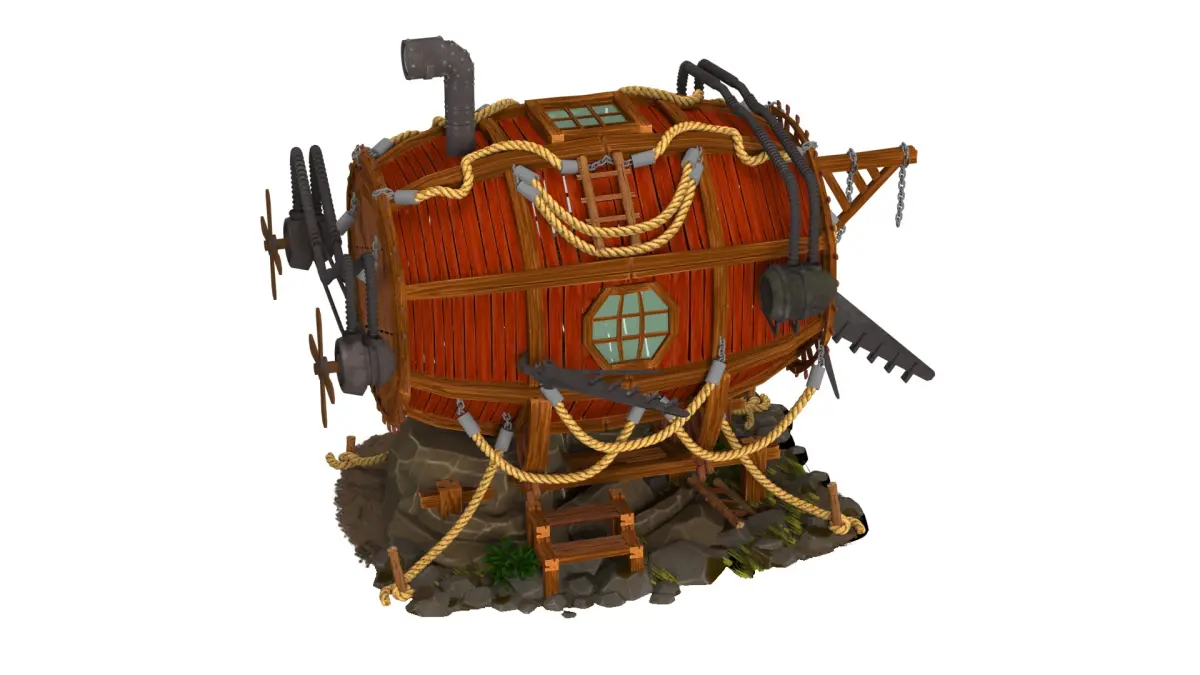 red submarine 3D model high-poly