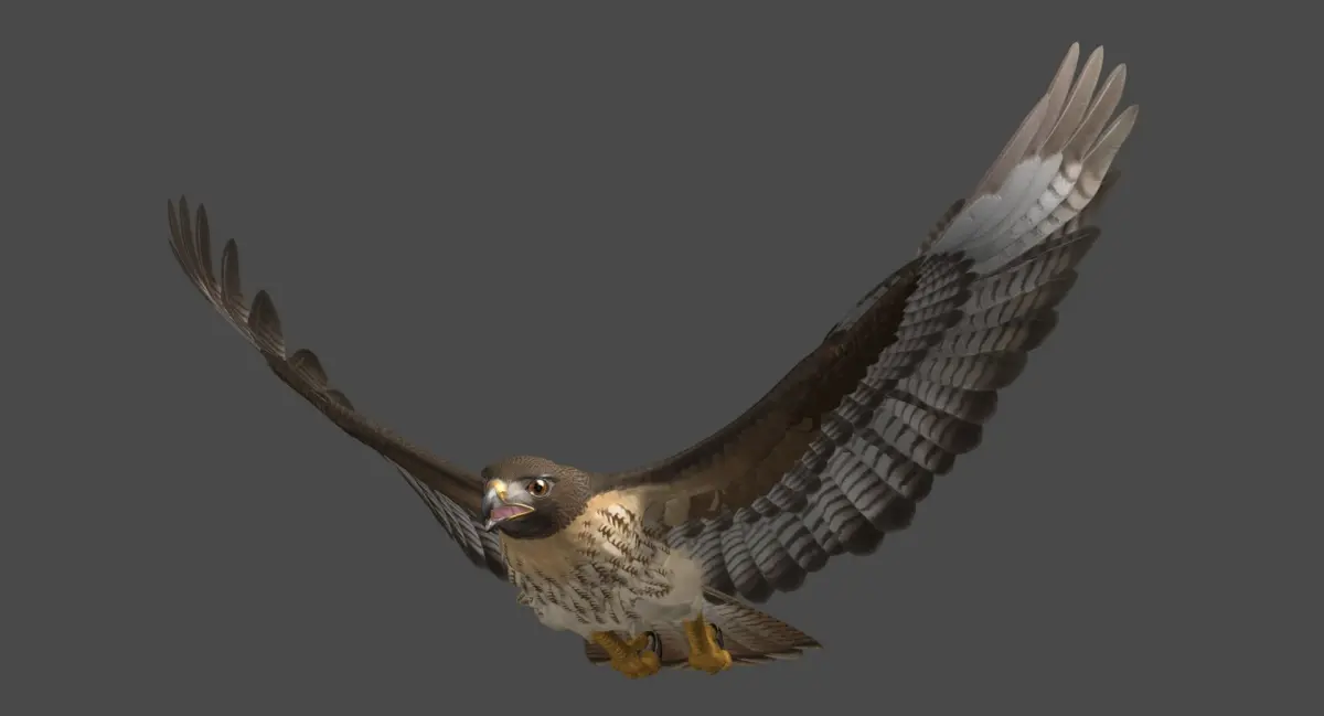 Rigged 3D model of Red-tailed Hawk or Chickenhawk 'Buteo Jamaicensis ' created in Maya 2016.