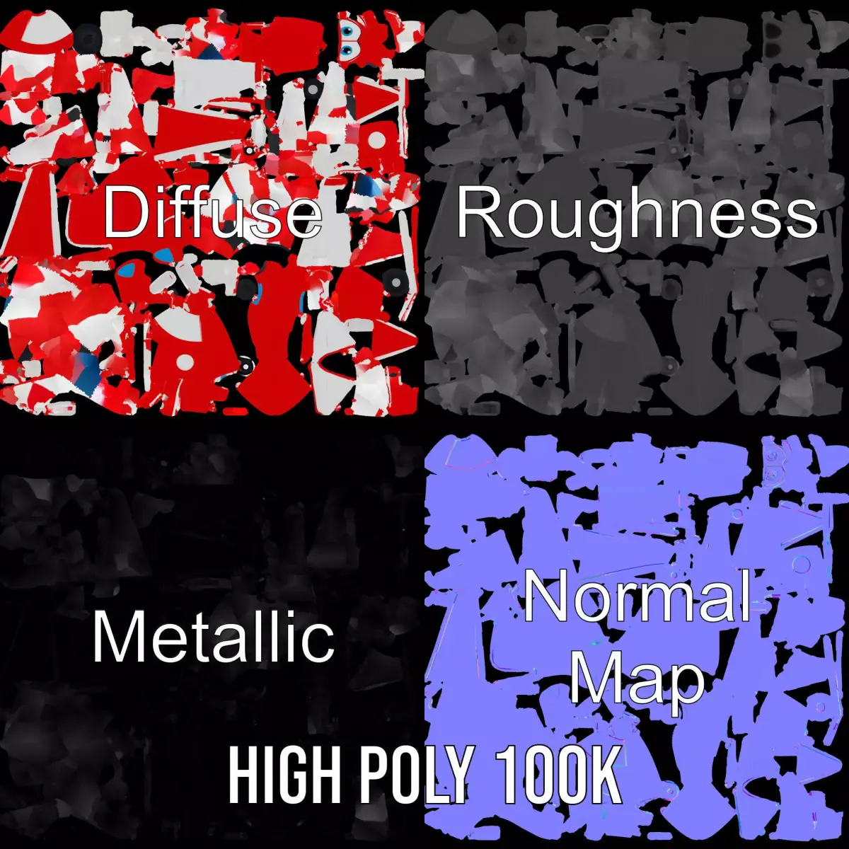The model's textures are PBR, Diffuse, NormalMap, and reflection/roughness/metallic, suitable for any modern rendering engine. All models are accurately unwrapped and have no overlapping UV. All textures are 4096*4096 in size.