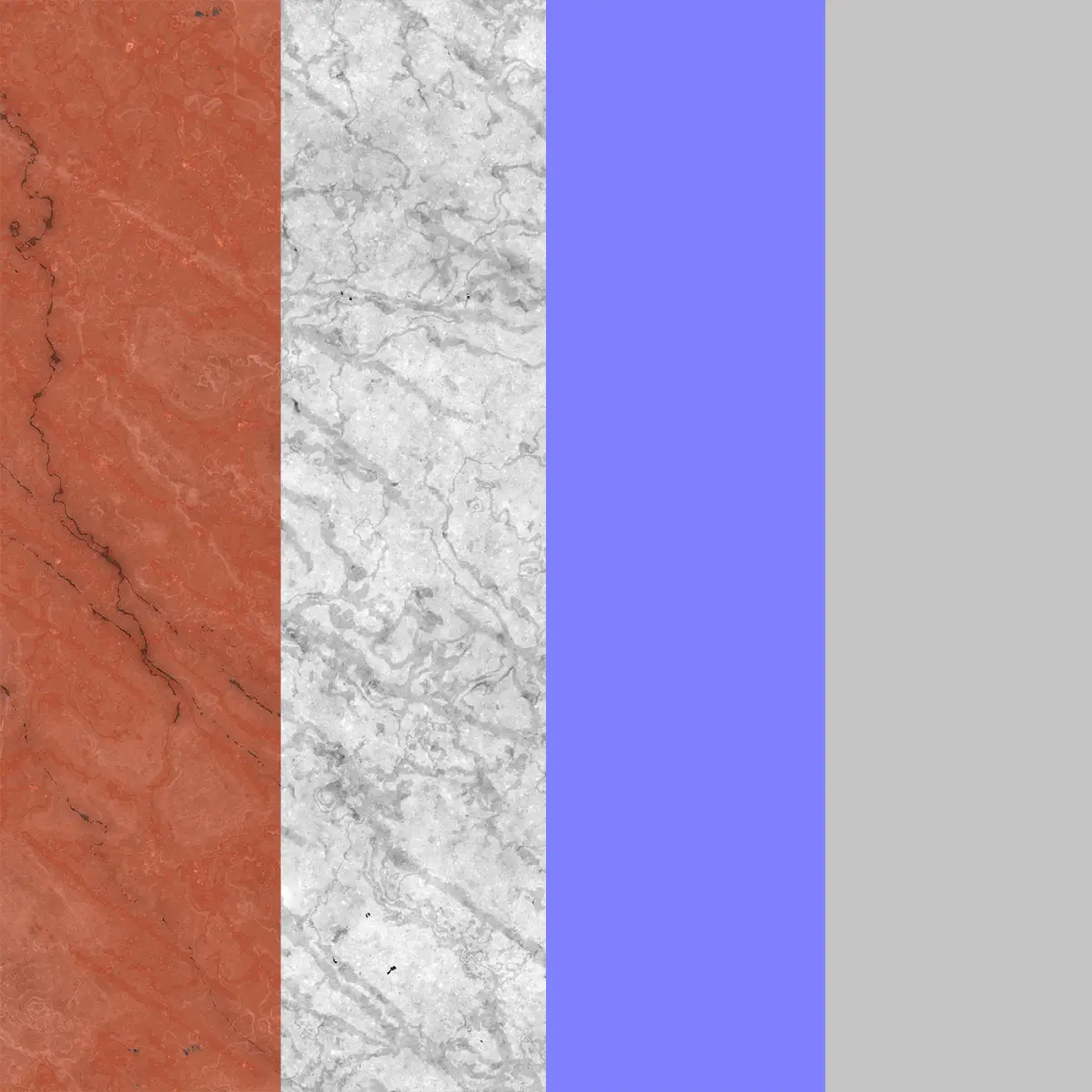 - Red Verona Marble PBR Metallic Material (Blender Cycles, Arnold, Cinema 4D, Unreal, Unity): Albedo, Metallic, Roughness, Normal, Displacement
