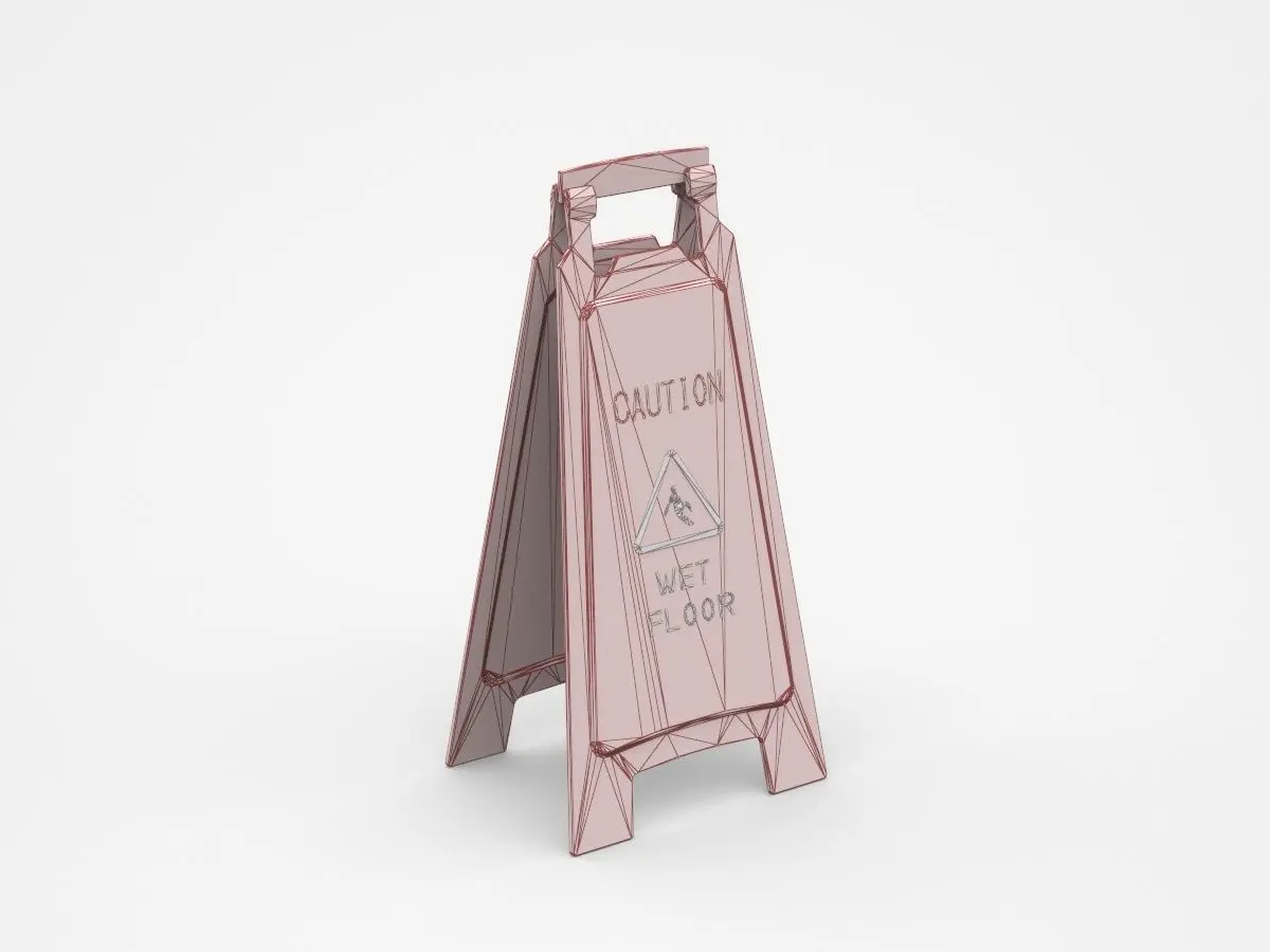 Home Catalog Red Warning Sign Barrier About Wet Floor 3D model