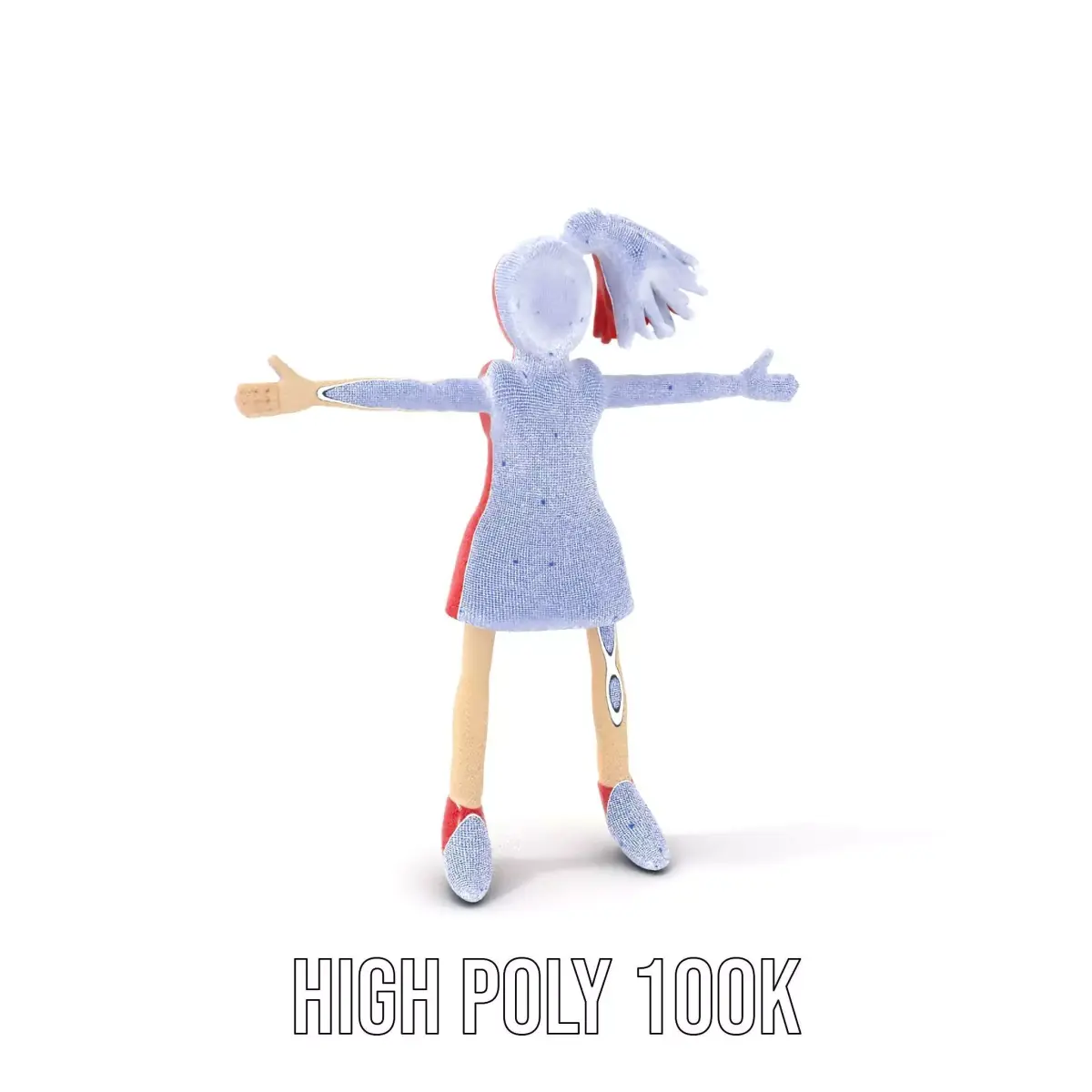 This 3D model pack features a charming red yarn doll, ideal for playful and warm environments. Each model has 3 levels of detail: low-poly (1000 triangles for mobile), middle-poly (10,000 triangles for environment), and high-poly (100,000 triangles), which allows for the use of this model in production rendering (such as 3ds Max, Maya, Cinema4D, Blender, Vray/Corona/Cycles and all other), game engines (Unity and Unreal compatible), and interactive presentations, providing a choice of detail based on the LOD System principle. Suitable for use in children's games, animated films, and educational apps. The model's textures are PBR, Diffuse, NormalMap, and reflection/roughness/metallic, suitable for any modern rendering engine. All models accurately unwrapped with no overlapping UVs. Textures are 4096*4096 in size. Please like and leave a comment if you enjoyed the model.