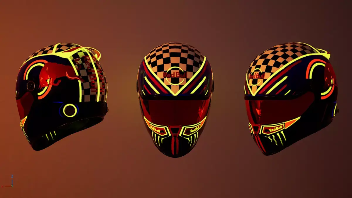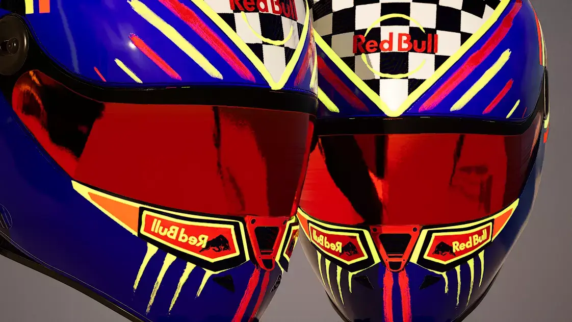 Red Bull Formula 1 helmet.Single medium/high poly mesh.Composed of multiple materials, supplied with PNG and PBR textures, with luminous details.Available in FBX and OBJ formats.