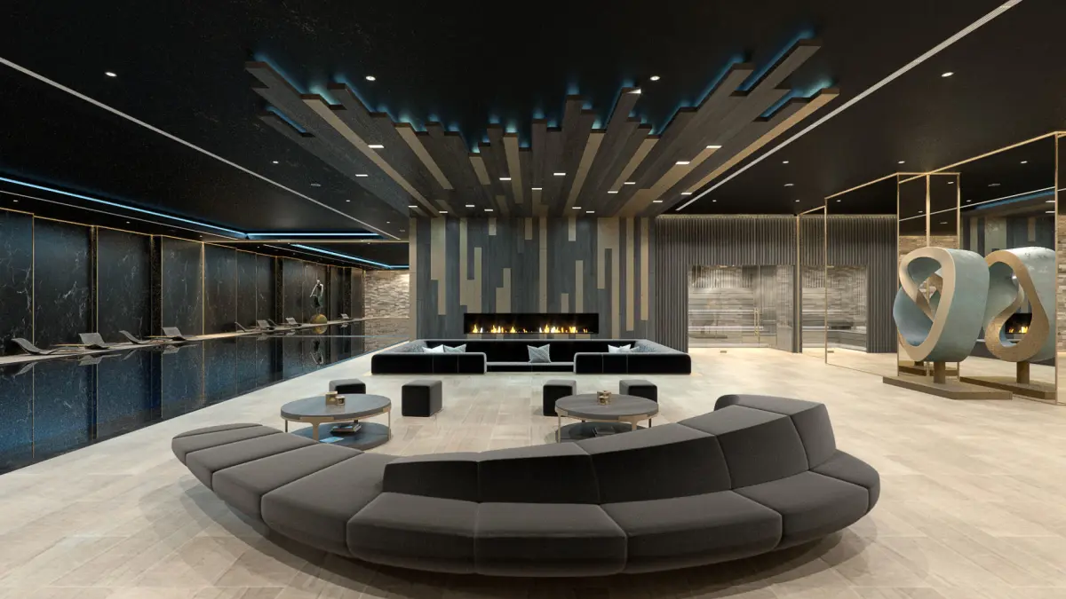 Redshift for Cinema4D CGI files for a Residential Pool space with a chill-out-area, sauna, steam room, massage area & fire pit. I can see this in a Luxury Home underground, on basement level where people can chill out next to the pool, or sit at the fire pit enjoying wine, or just enjoying a nice massage in the Spa...