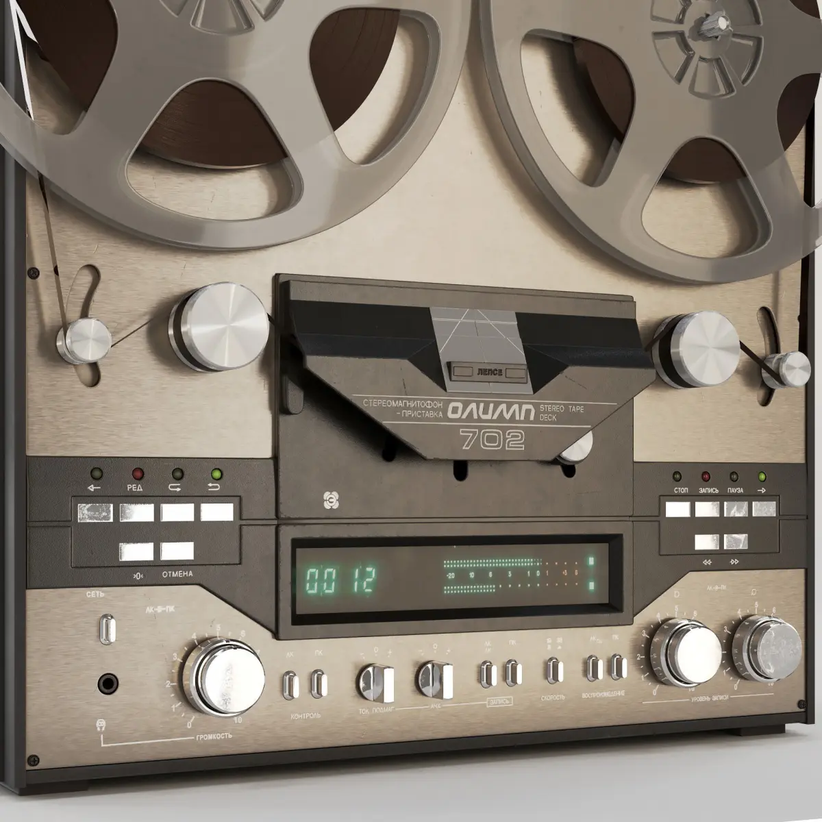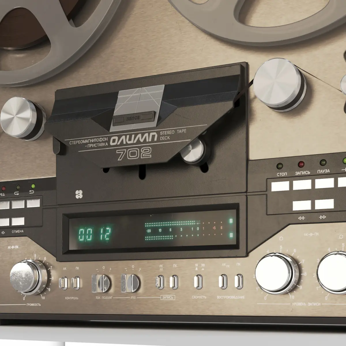 The Olymp-700 set-top box tape recorder had full automatic reverse, luminescent recording level indication, as well as a nice electronic magnetic tape counter.