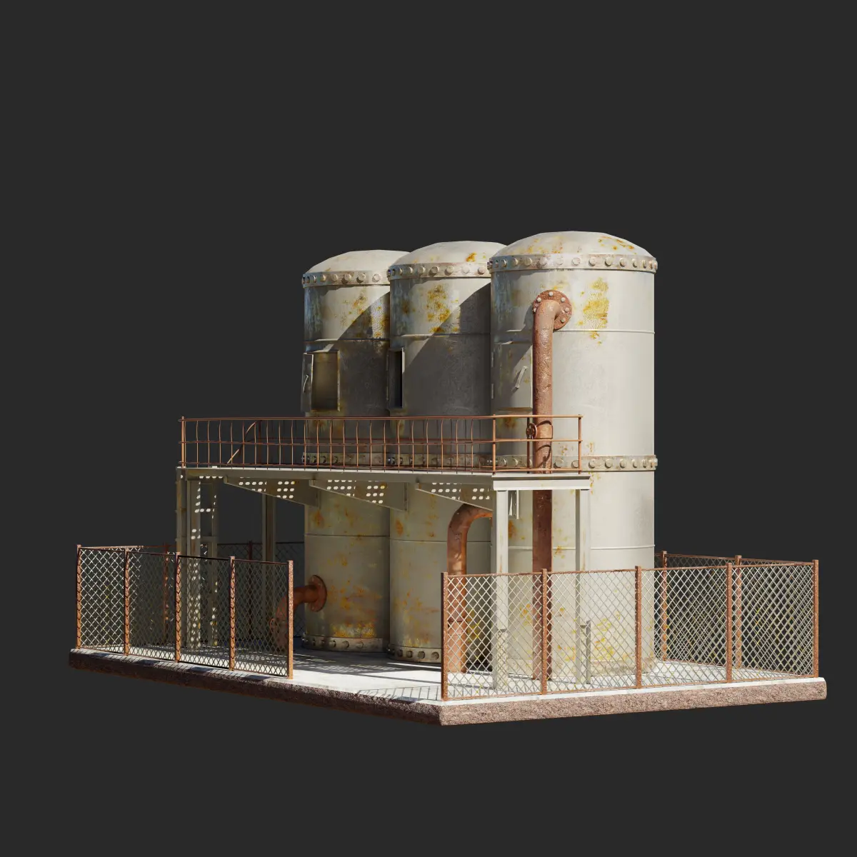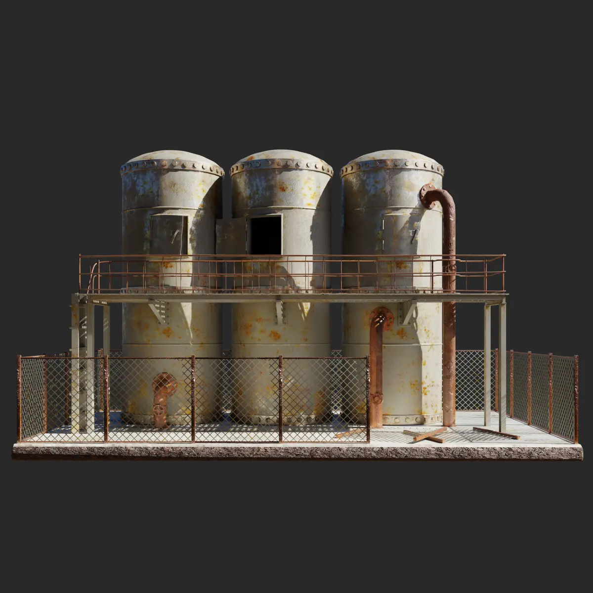 Detailed model of a rusty set of silos. UV unwrapped, with seperate rust maps. Fully customizable. Compatible for every 3d software, game engine.