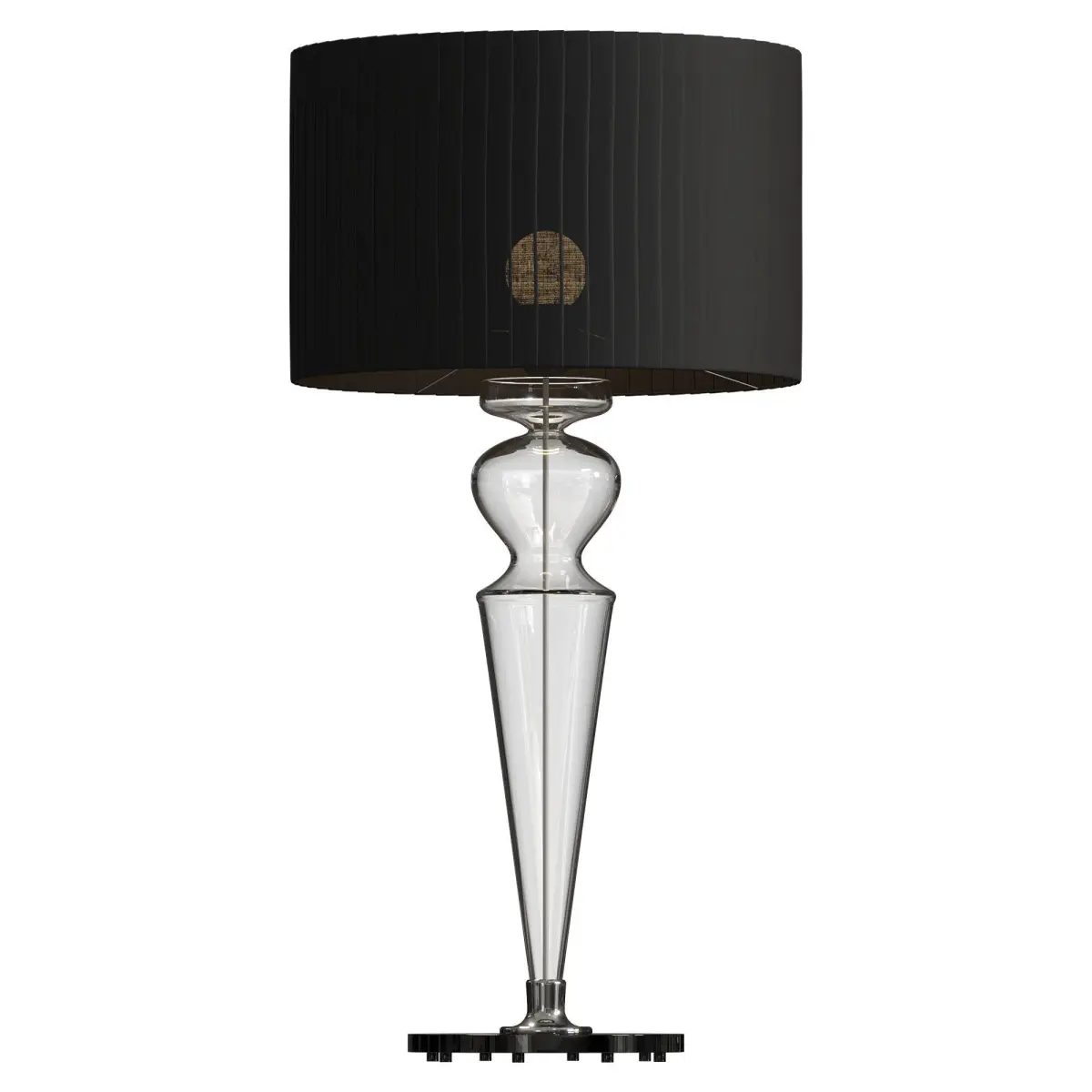 Table lamp with central leg in Murano glass transparent with fixing part in polished aluminum to a glass base.High detailed 3D modelAll geometry is ready for subdivisionPolys: 34288Verts: 34516Dimensions: 44 x 44 x 85 cmCorona Legacy MTL