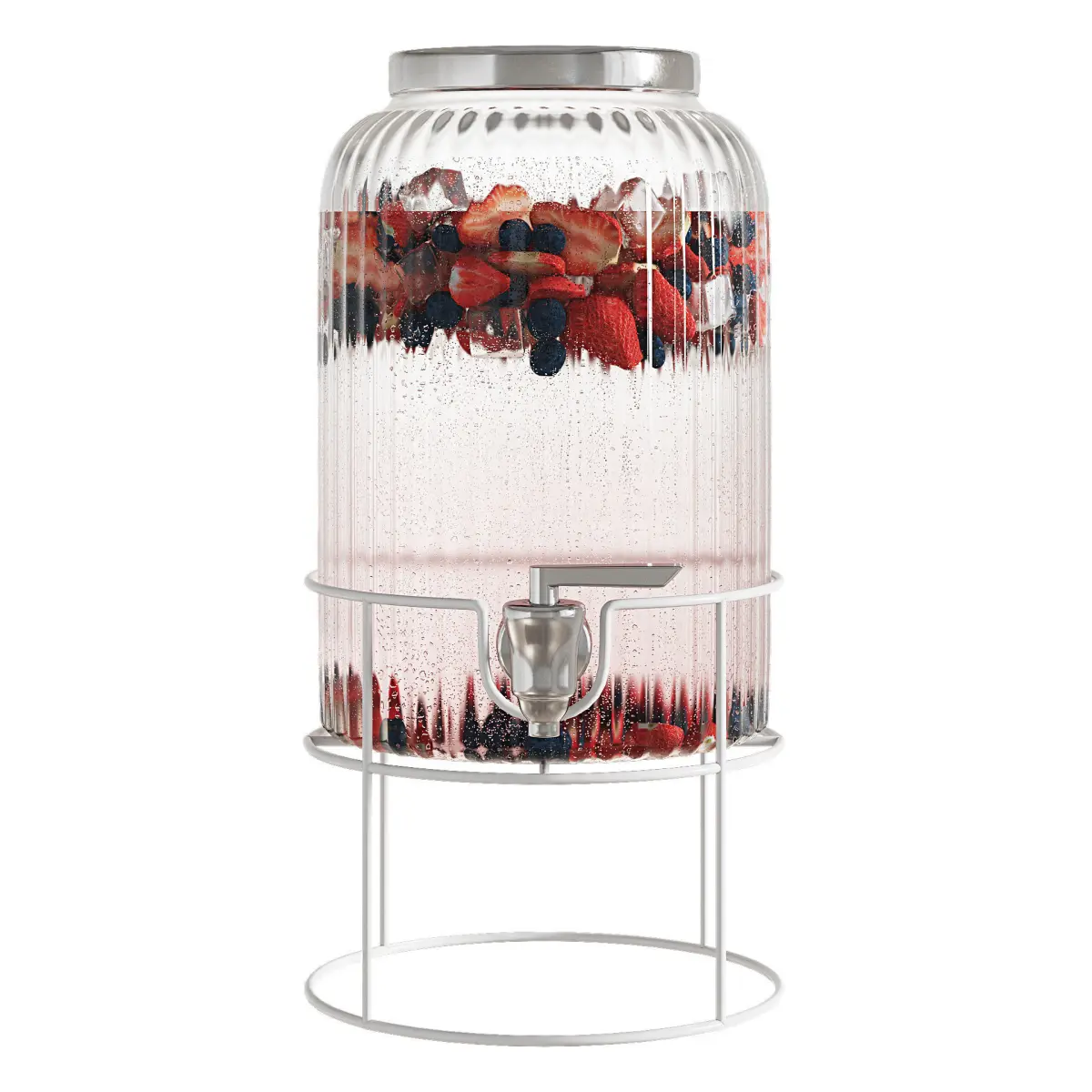 - Glass drink dispenser with stand. The color of the stand can be easily changed in the material itself.