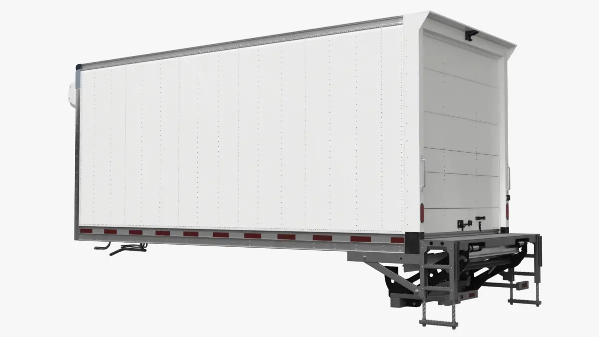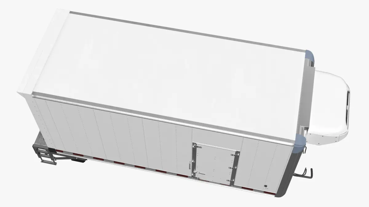 Refrigerated Vehicle Body Standalone White is a three-dimensional model of refrigerated trailer unit that is a temperature-controlled trailer used for transporting perishable goods and food.