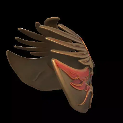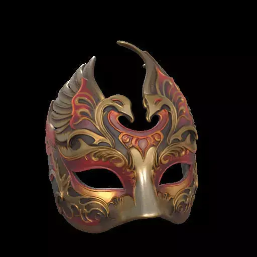 This stunning mask displays intricate detailing with a regal bird motif, blending golden and deep red tones. The soaring feather designs are accented by delicate, curved lines, giving it a majestic and sophisticated appearance. Perfect for masquerades or theatrical performances, this mask is a beautiful combination of elegance and strength.