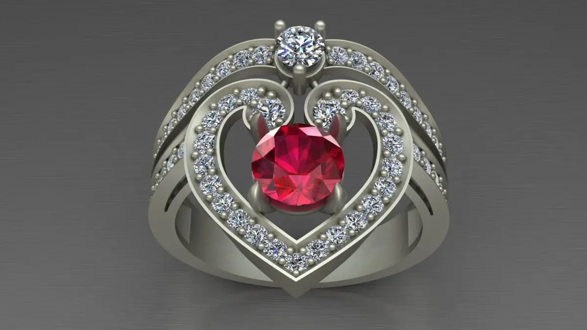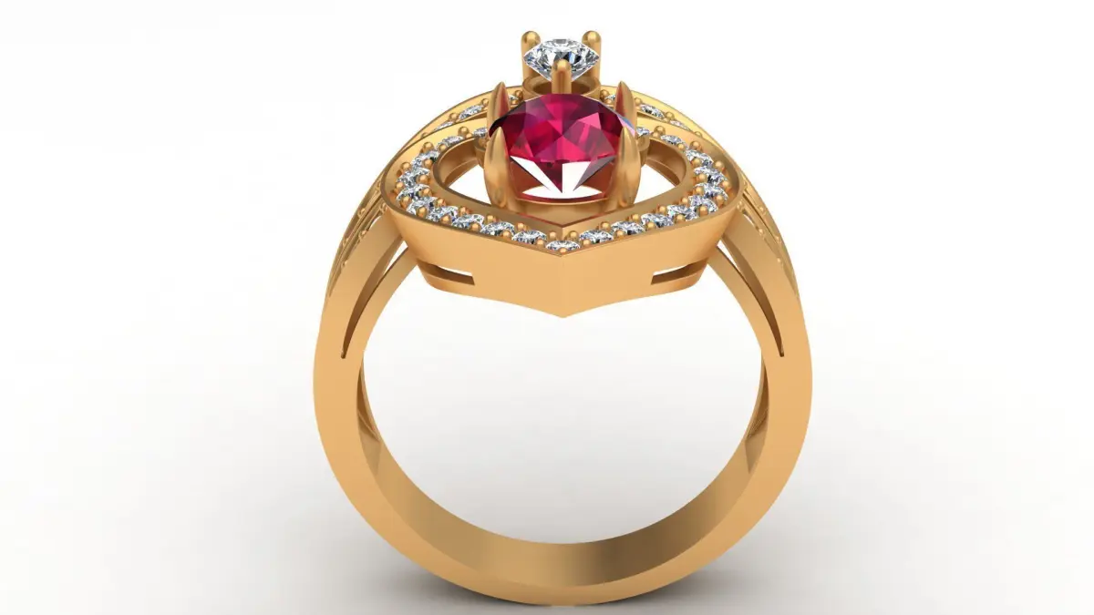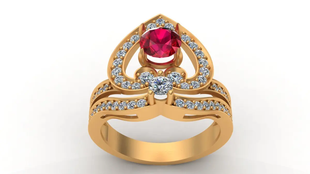 Regal Cascade Diamond Ruby Gold Ring 3D print model