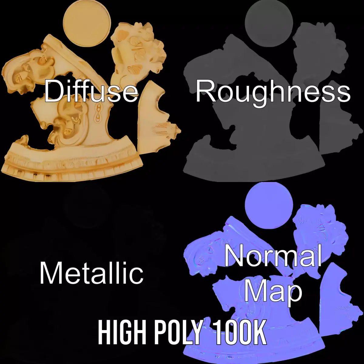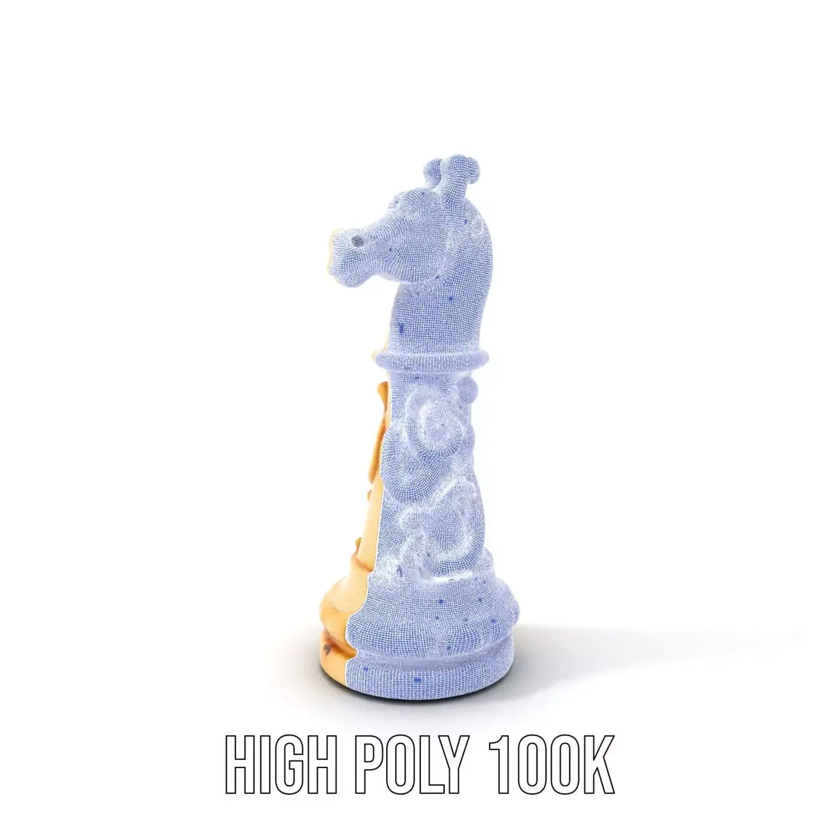 The Regal Ivory Knight model pack features a beautifully detailed chess piece in a classic ivory color, perfect for game assets or ornamental projects. Each model has 3 levels of detail: low-poly (1000 triangles for mobile), middle-poly (10,000 triangles for environment), and high-poly (100,000 triangles), enabling use in production rendering with 3ds Max, Maya, Cinema4D, Blender, Vray/Corona/Cycles, game engines (Unity and Unreal compatible), and interactive presentations according to the LOD System principle. Ideal for chess games, decorative art visualizations, or historical themed projects. The model's textures are PBR, Diffuse, NormalMap, and reflection/roughness/metallic, suitable for any modern rendering engine. All models are accurately unwrapped with no overlapping UVs. All textures are 4096x4096 in size. Please like and leave a comment if you enjoyed this model pack.