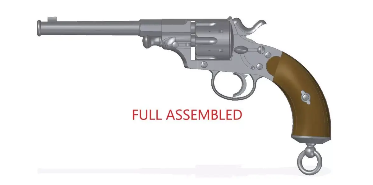 Full assembled model of German Empire revolver and its bullet