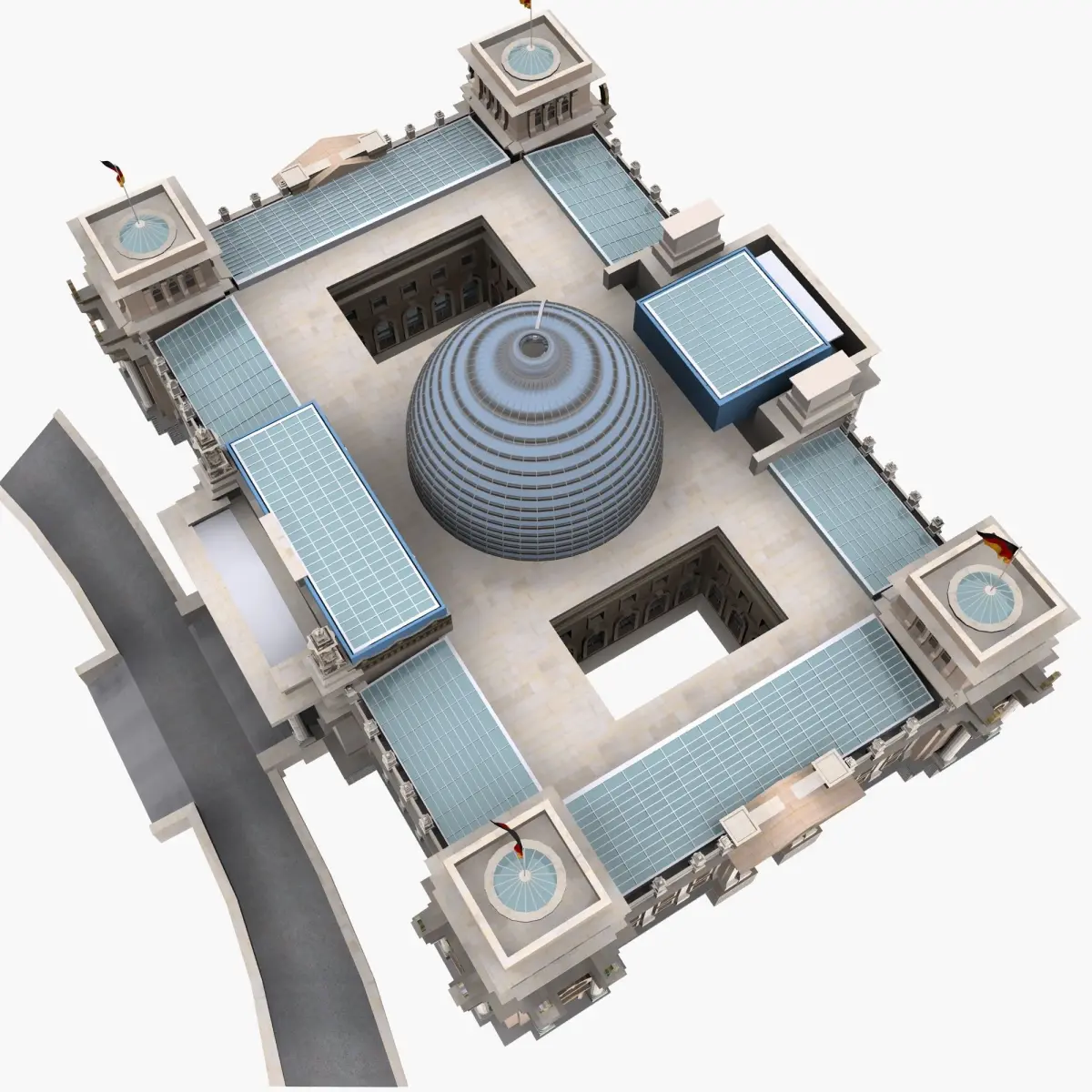 Reichstag Building Berlin 3d ModelThis is a Medium Detail 3D model of The Parliament Building and The Reichstag in Berlin