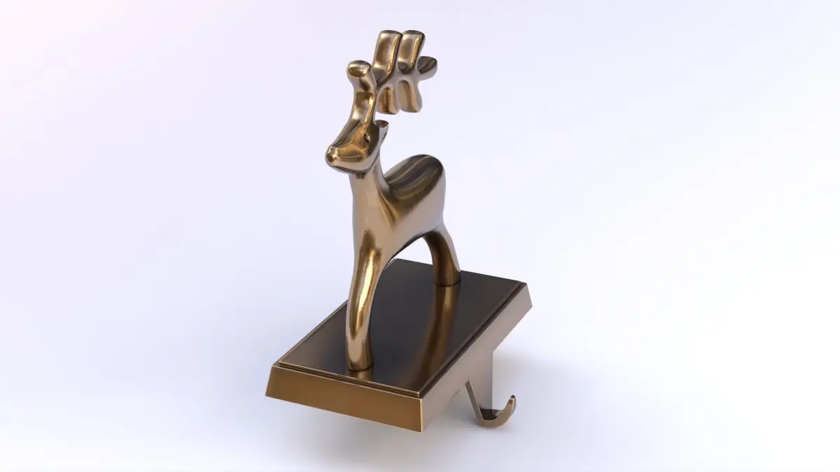 Reindeer shaped brass hanger for the Christmas stockings in your holiday scenes. High quality, photo real model with 4K PBR textures that allow for close-up renders. Modeled in Maya 2023 and rendered in Arnold. The mesh is centered at the origin (0,0,0) with the pivot point at the bottom of the flat part of the hanger’s stand so you can easily snap the hanger to a shelf or a fireplace mantel.