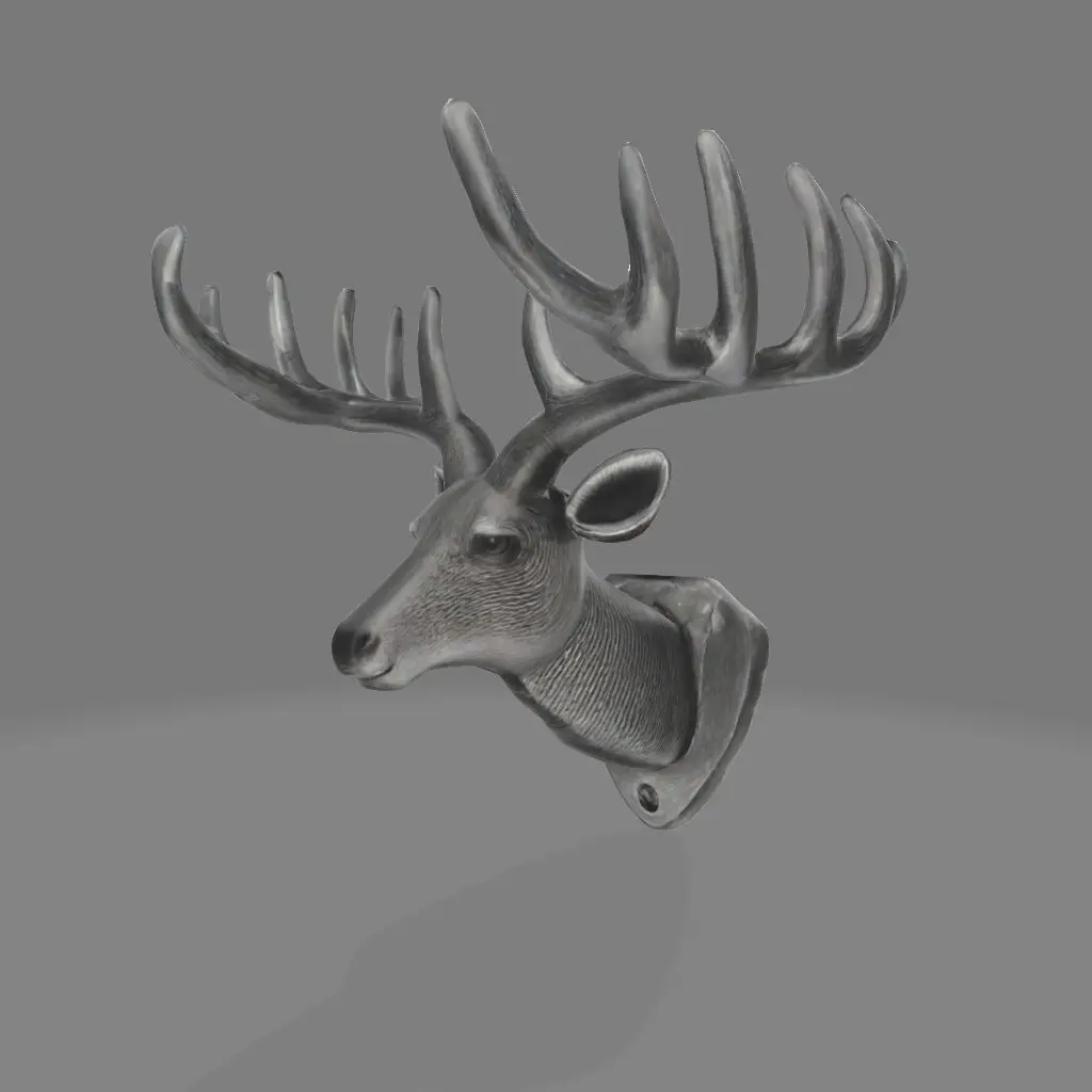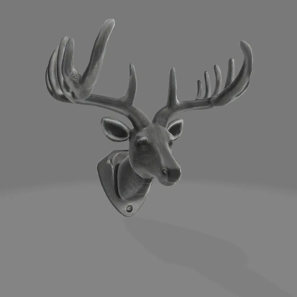 A 3D printed reindeer head wall mount with a sleek, artistic design. The piece features detailed, branching antlers and smooth, elegant curves that exude modern aesthetics. Over the reindeer's head is a discreet hole for easy wall mounting, seamlessly blending functionality with contemporary style. Perfect as a decorative centerpiece for homes, offices, or holiday displays.