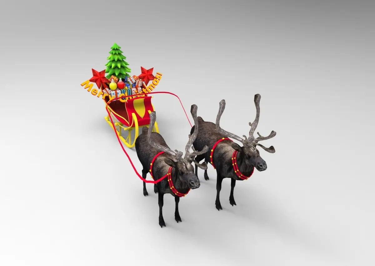 *Deer Sleigh Model : Game ready low poly *