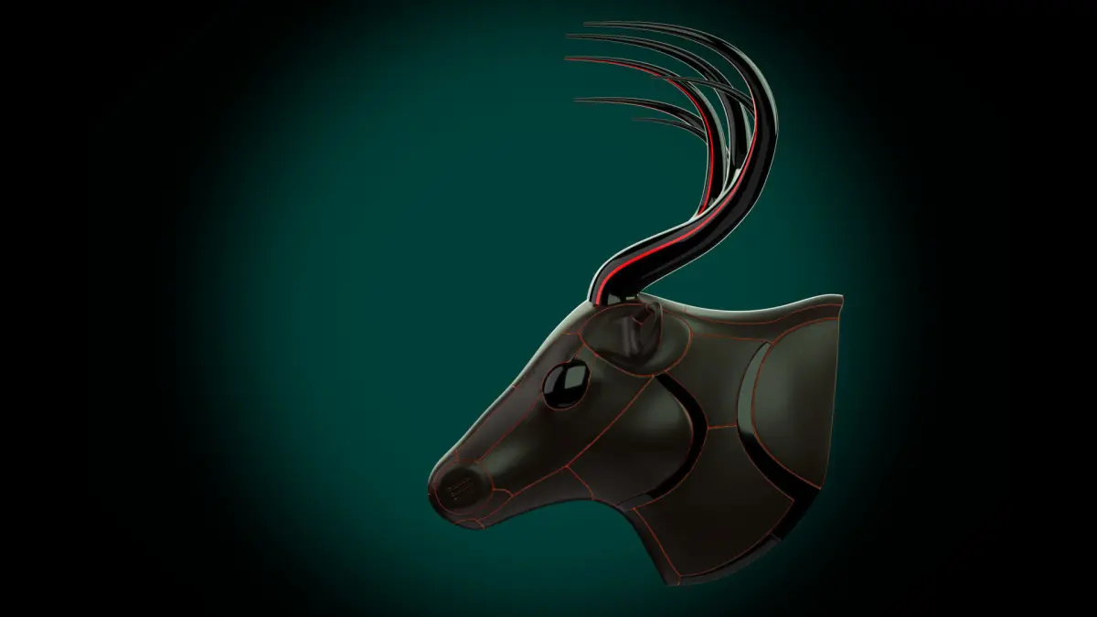 stylized reindeer head. This could be your logo? This could be your desktop background? this could be a 3D printed decoration? (actually it´s not optimized for printing, but it should be possible) clean topology!