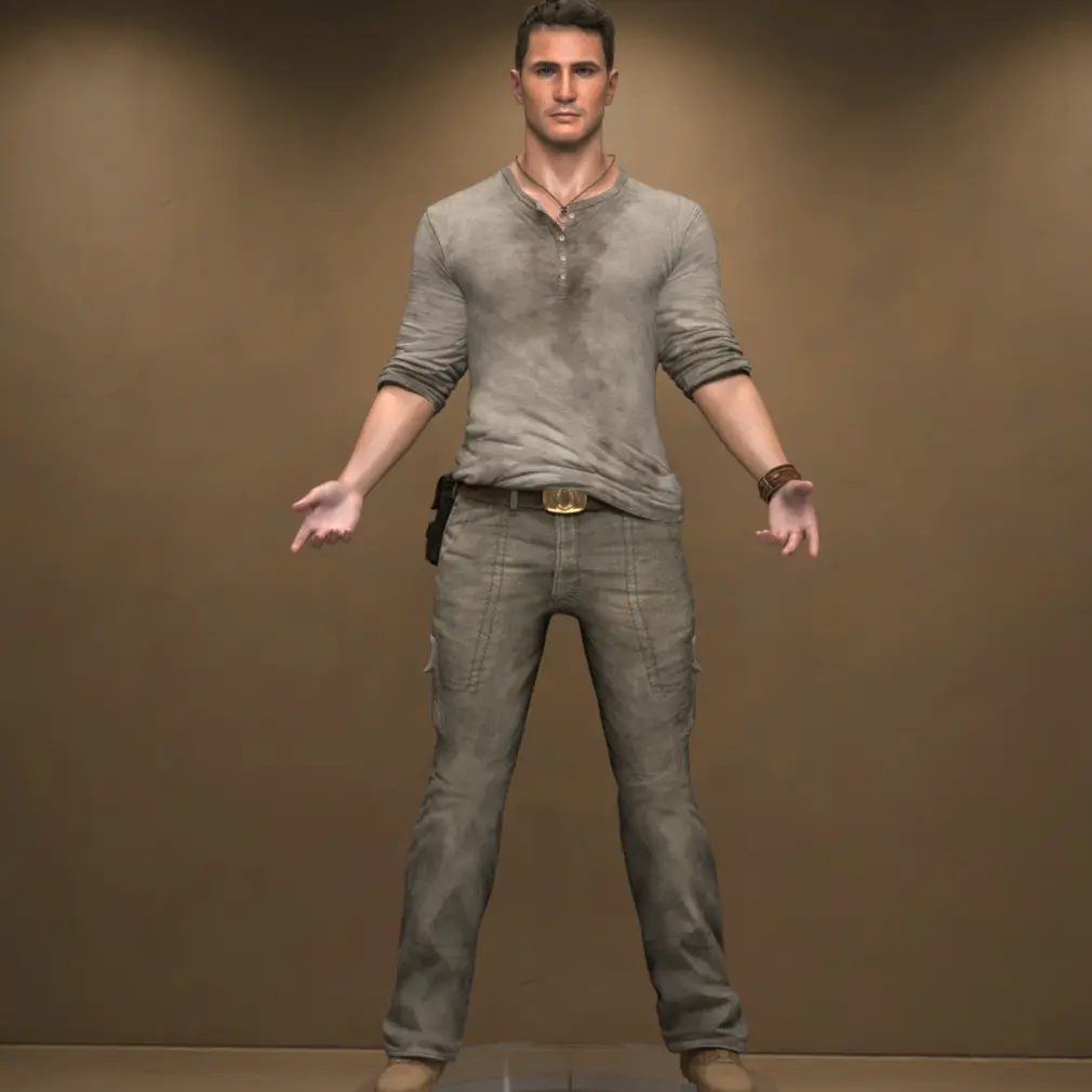 Relic Hunter is a custom Genesis 9 male character inspired by Nathan Drake from Uncharted 3. This product includes a full-body morph (head and body are not separated), realistic materials, explorer-style clothing, and hair with matching facial details.