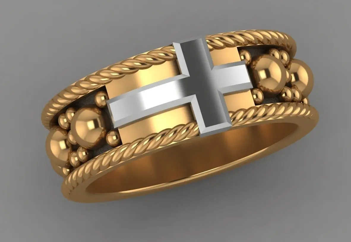 HomeCatalogReligion cross ring made of two types of metal 3D print model