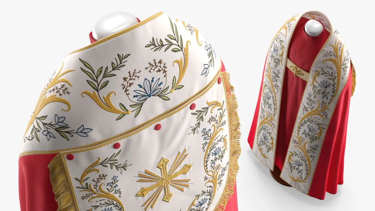 Religious Clergy Chasuble Traditional Red Gold is a high quality, photo real 3d model that will enhance detail and realism to any of your rendering projects. The model has a fully textured, detailed design that allows for close-up renders, and was originally modeled in 3ds Max 2020 and rendered with V-Ray. Renders have no postprocessing!