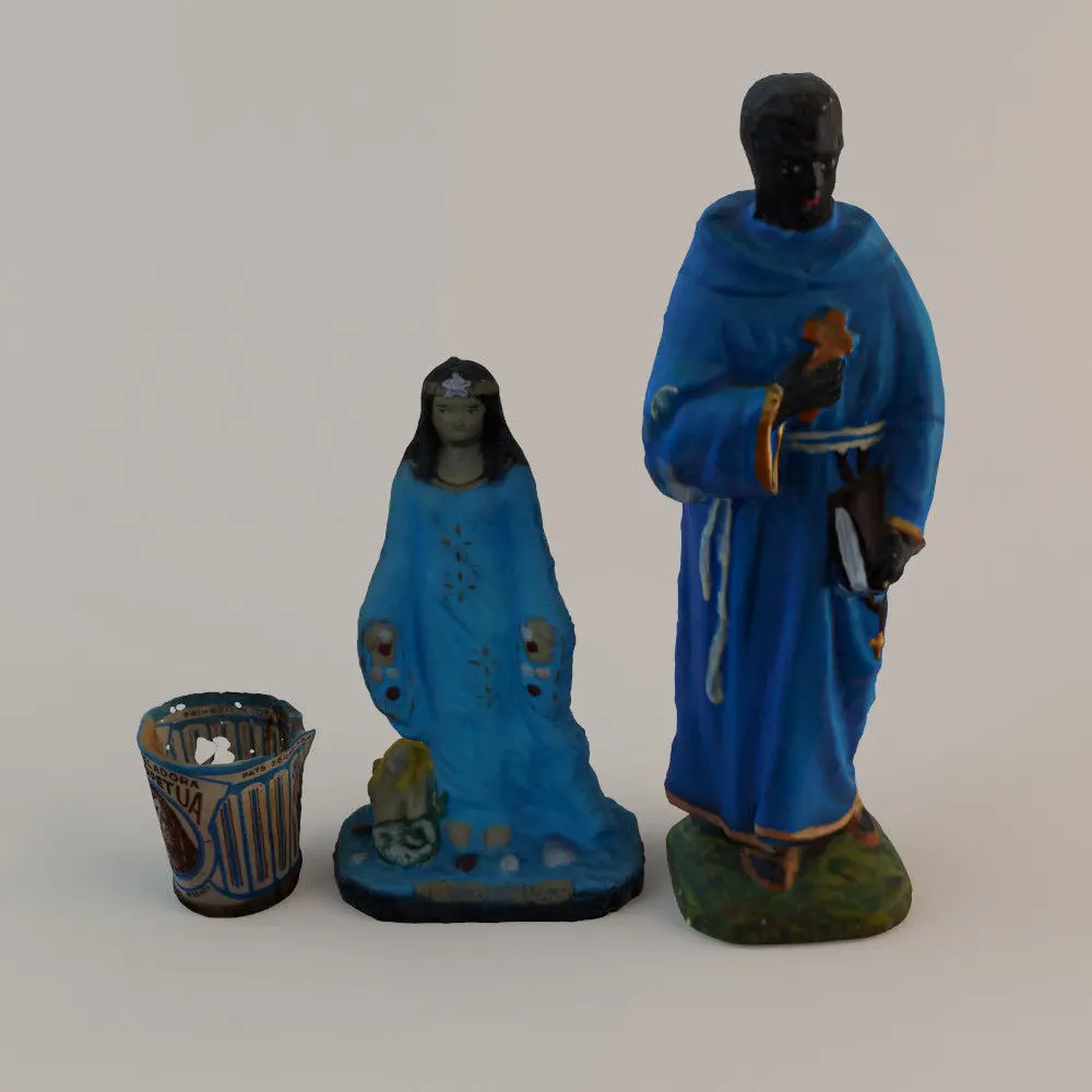 Religious statuettes and a candle. The items have been photo scanned and are very accurate.