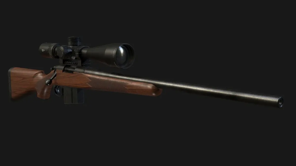 Each part of the rifle has its own texture map, most of the parts have different material options available: rifle metal parts are available in powder coated metal, blued metal and bare brushed metal; stock is available in wood, soft polymer and textured polymer.