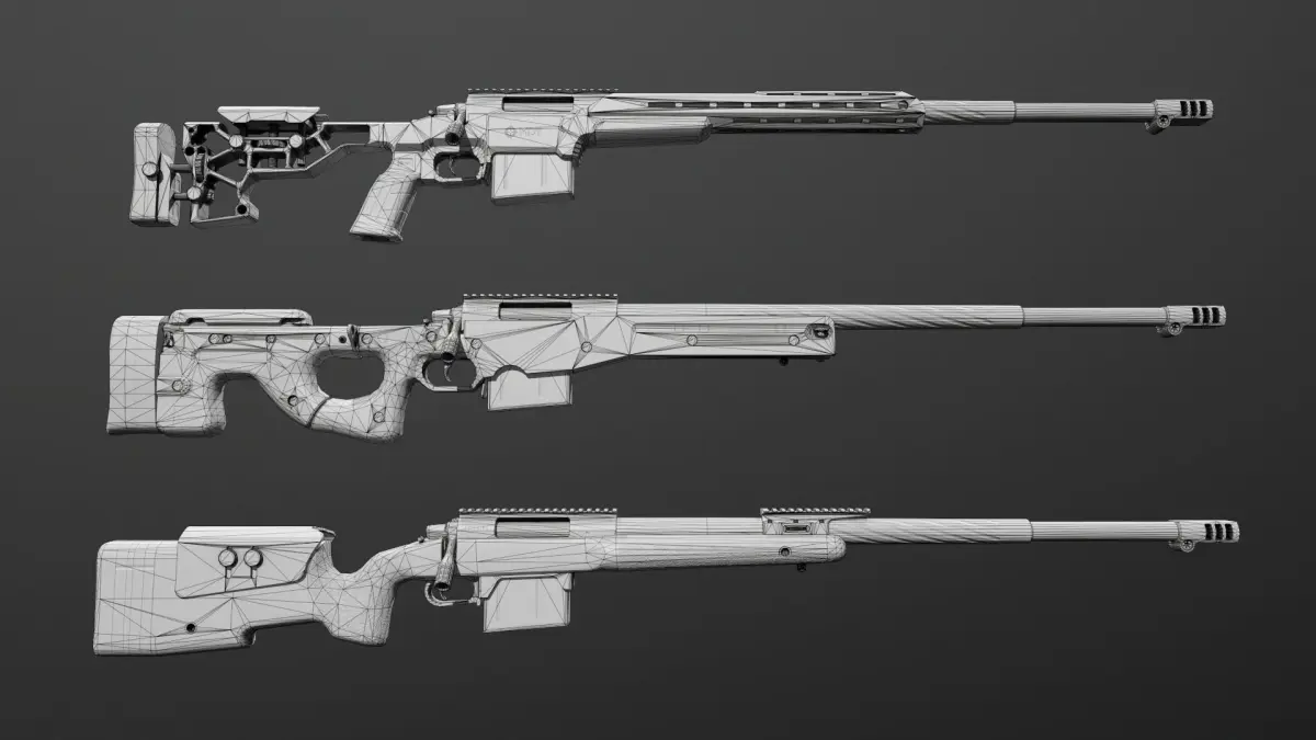 Game Ready model of a Custom Remington 700 Sniper Rifle chambered in .338 Lapua Magnum.