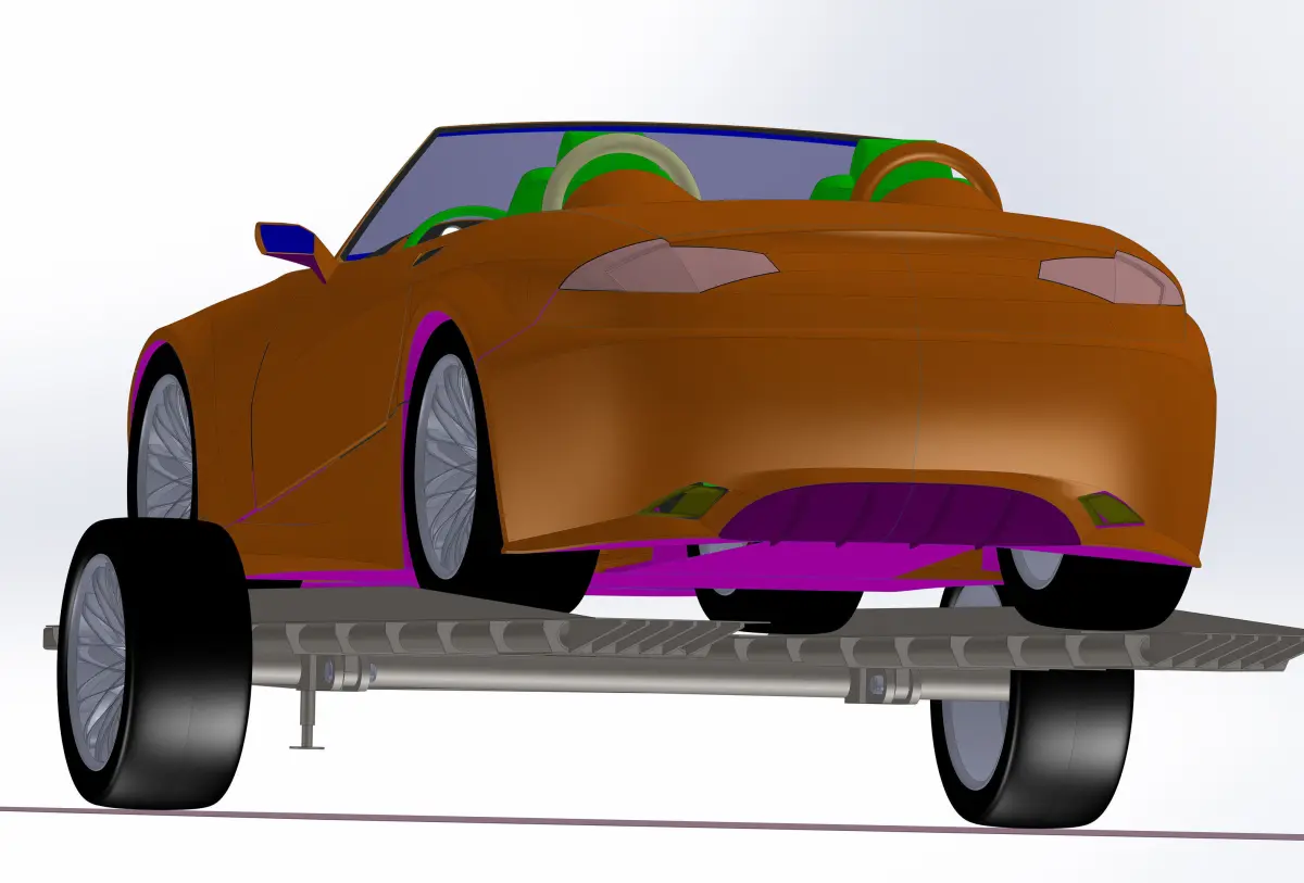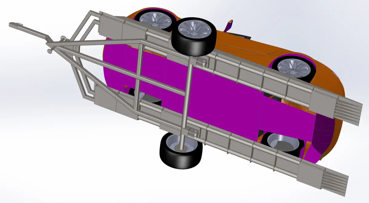 Race car trailer light, based on the operation of the car jack system, for raising and lowering the ramp, very light structure made of structural tube recycling worn wheels of the car to the trailer and with a slope of 9 degrees for up the comfort of the car.