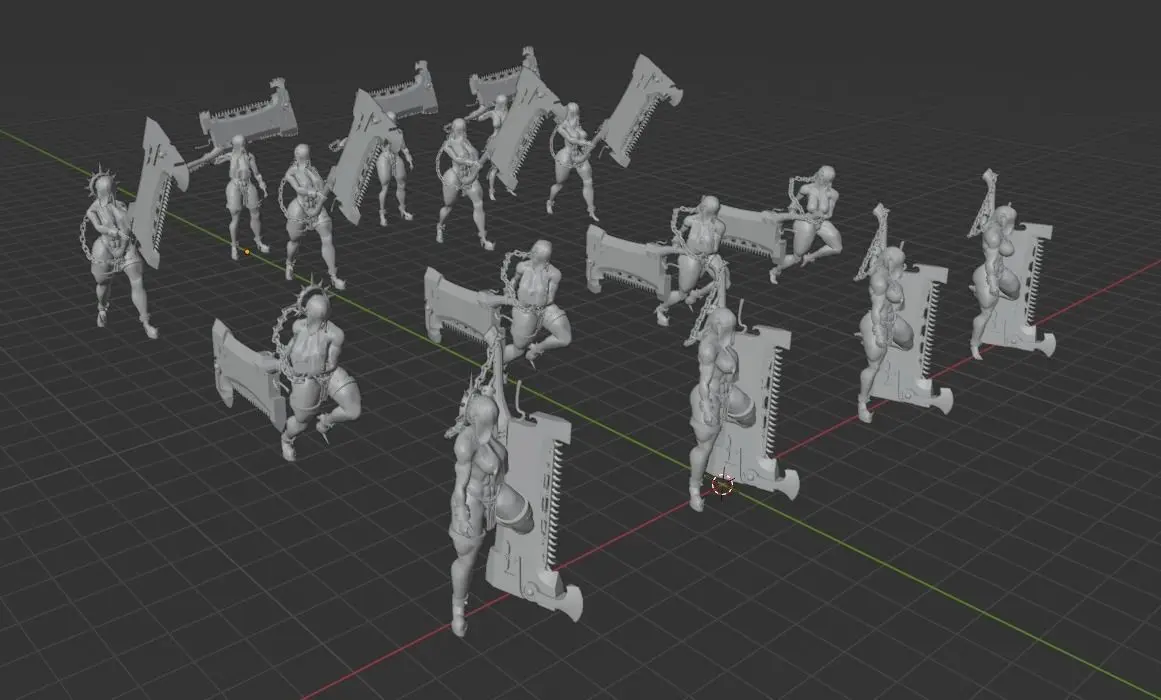 Saw this awesome chaos repentia art by Feuro Art and it inspired me to make something similar. I'm a loyalist myself however, so I didn't give as much chaos flare. 4 poses, and 4 armor configurations. their bodies stand about 40mm tall and will fit on as small as a 28mm base.