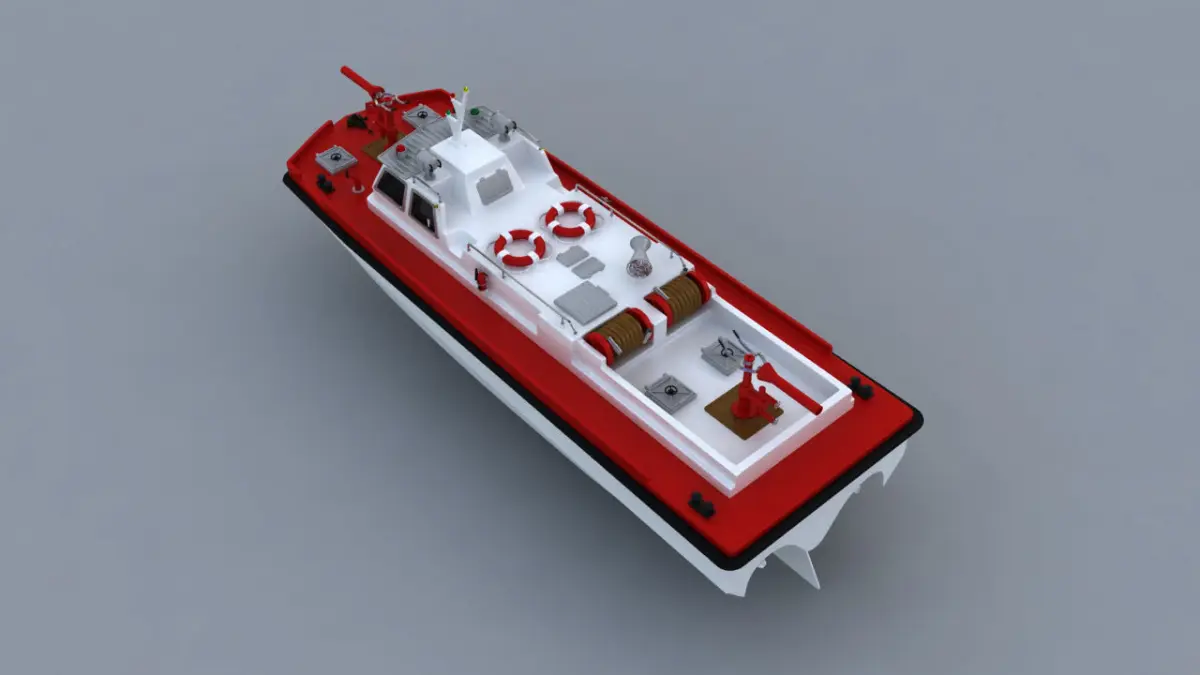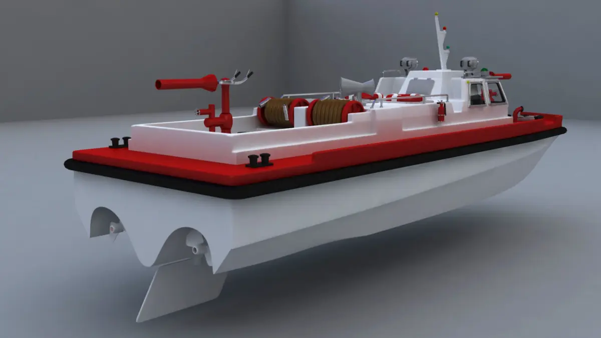 The model has a simple three-seat interior, fire extinguisher, hydrants, life buoys