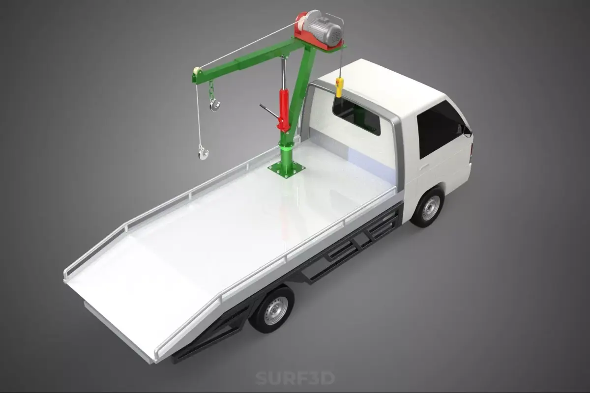 An Electric Winch Hoist Swivel Crane Hook Jib with Remote attached to a Truck Pickup represents a highly specialized and mobile material handling system. This integrated apparatus is engineered for the efficient lifting, lowering, and precise positioning of heavy loads, primarily in environments where fixed lifting solutions are impractical or unavailable, leveraging the mobility of a light commercial vehicle.