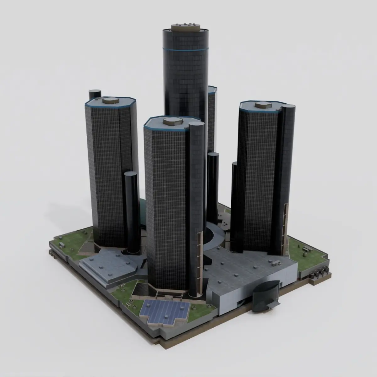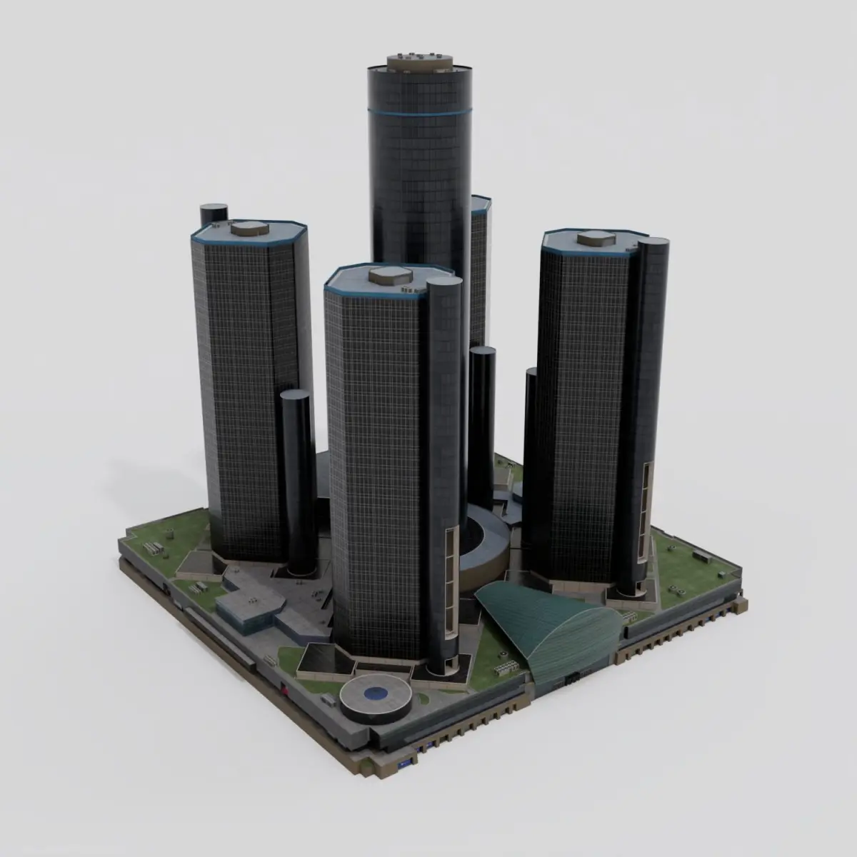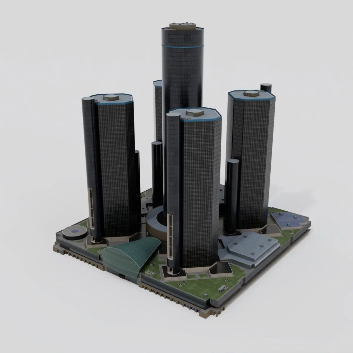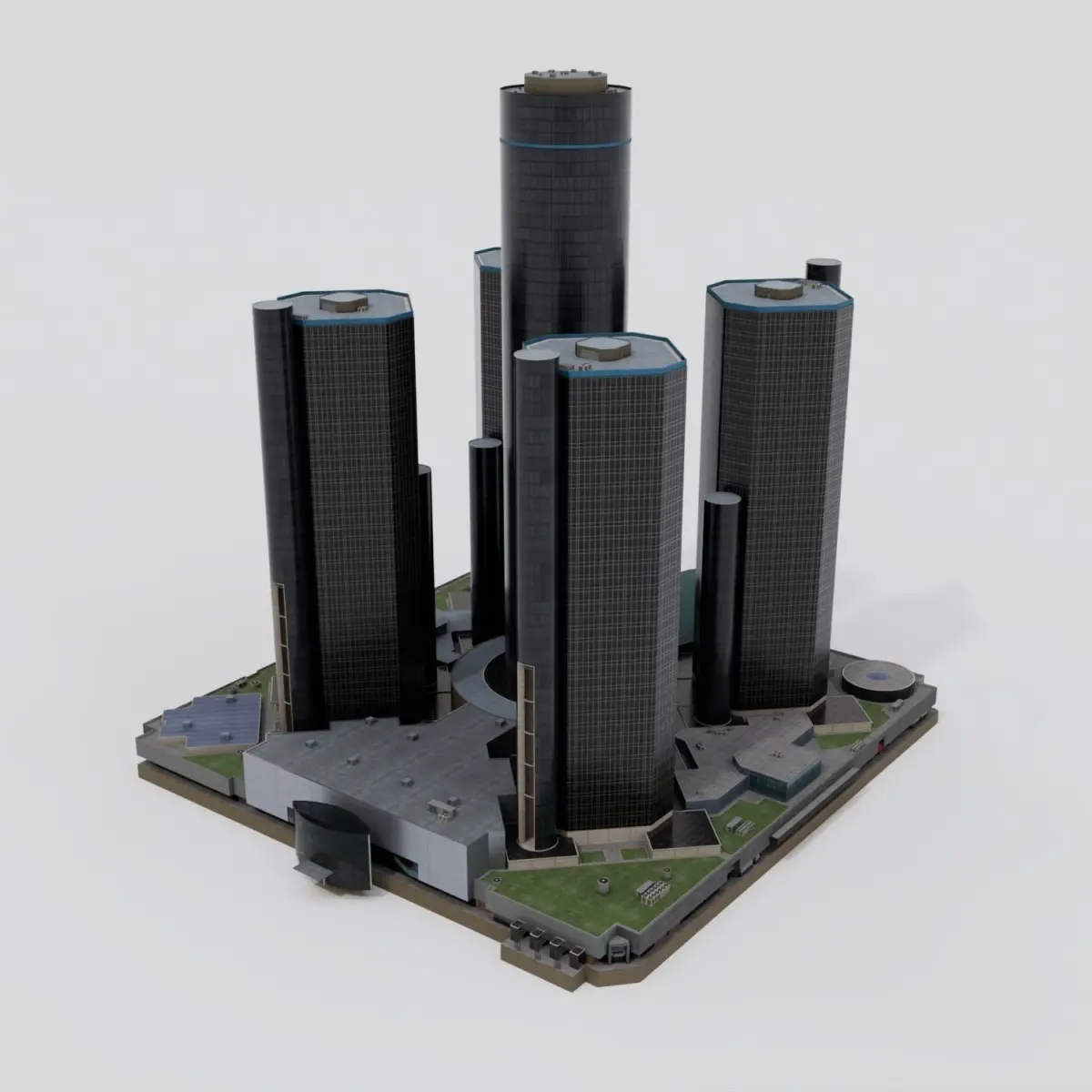 The Renaissance Center, situated in downtown Detroit, Michigan, is a notable complex comprising seven interconnected skyscrapers. Finished in 1977, it serves as General Motors' headquarters and is renowned for its modernist architectural style. The complex includes the Detroit Marriott at the Renaissance Center, which stands as one of the tallest all-hotel buildings in the Western Hemisphere. Featuring cylindrical glass towers, the Renaissance Center provides breathtaking views of the Detroit River and city skyline. This iconic site is a central hub for business, dining, shopping, and tourism, playing a significant role in Detroit's urban environment.