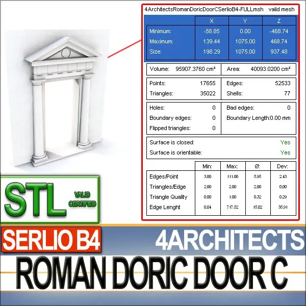 Famous Roman Doric Door by Serlio Renaissance-Neo-Classical Style. Ready for Ancient and Modern Contemporary Architecture. Real World Scale. STL, REVIT, SKETCHUP, VUE, C4D, OBJ, 3DS ready!