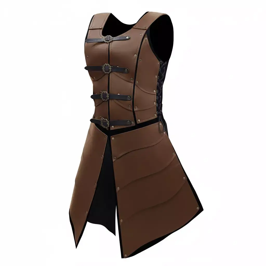 Layered Design: Overlapping leather panels provide flexibility while mimicking traditional plate armor.Functional Details:Central belt with a prominent buckle for securing the garment.Lacing along the sides for a tailored silhouette.Rounded shoulder guards for added defense.Material Richness:Textured leather with realistic stitching and weathering effects.Polished metal accents for durability and aesthetic contrast.Technical Precision:4K PBR textures (albedo, roughness, normal maps) for photorealistic rendering.Optimized topology for smooth animation or 3D printing.Perfect for cosplay, historical reenactments, or as a digital asset in games/animation. This model bridges functionality and fashion, ideal for enthusiasts of medieval history or fantasy role-playing.