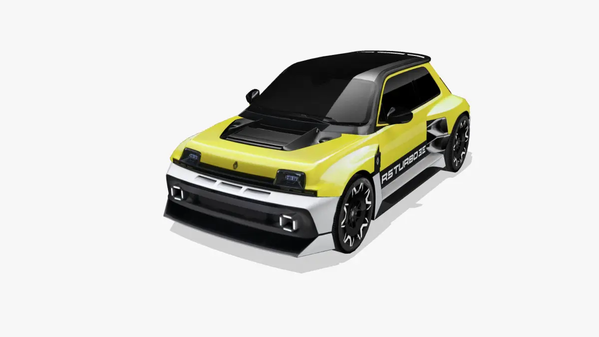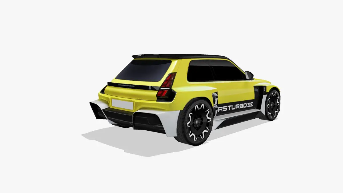 3d model of the 2027 Renault 5 Turbo 3E, a sport compact hatchback battery electric car